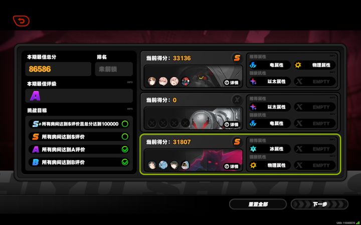 和师傅相性严肃不合……21师傅以太弱点,拼死2.3W(后面打了几次越大越低了……难绷……)(细节点评:一种是有大立刻用,一种是稍微囤一下进失衡再用,不过后者打防卫战明显分数低很多,当然因为我不想排轴……也没法排,不是回合制,手法误差太大了)01雅冰弱永远稳稳拿下(我的师傅怎么这么奇怪……)这俩换一下更打不了,师傅第三间也是2W出头,雅没了冰弱去第二间也变2W了……(万千BUFF不如一个属性