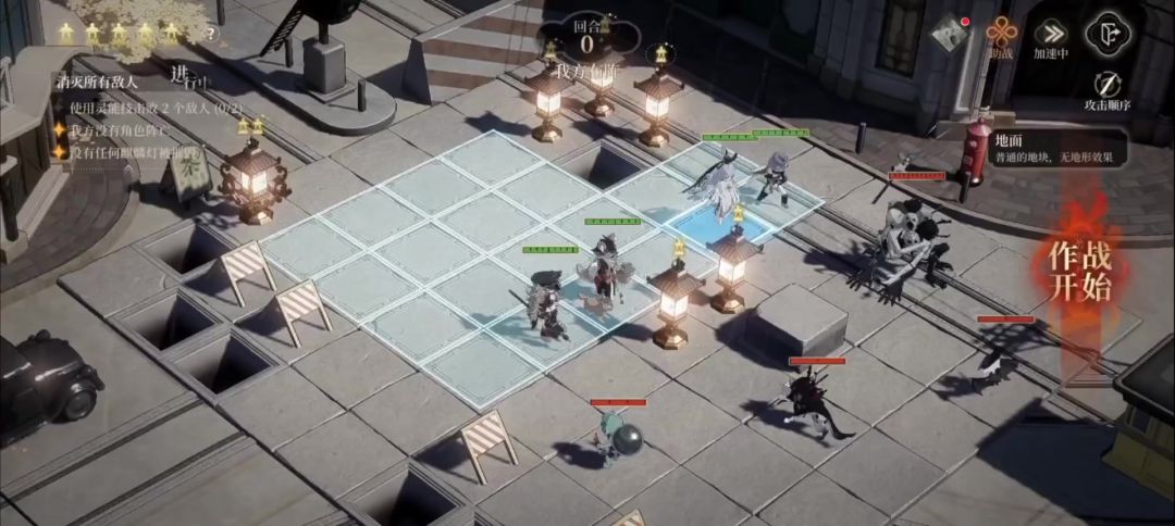 阵容是:狼,伊恩,哈特,尘阳子 有推技能的角色站位可以这样没有的最右边两个站灯后面 (最重要的是要自己打着舒服顺手,本视频仅做参考)#野火流明#野火流明千映测试#攻略#游戏攻略