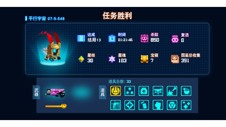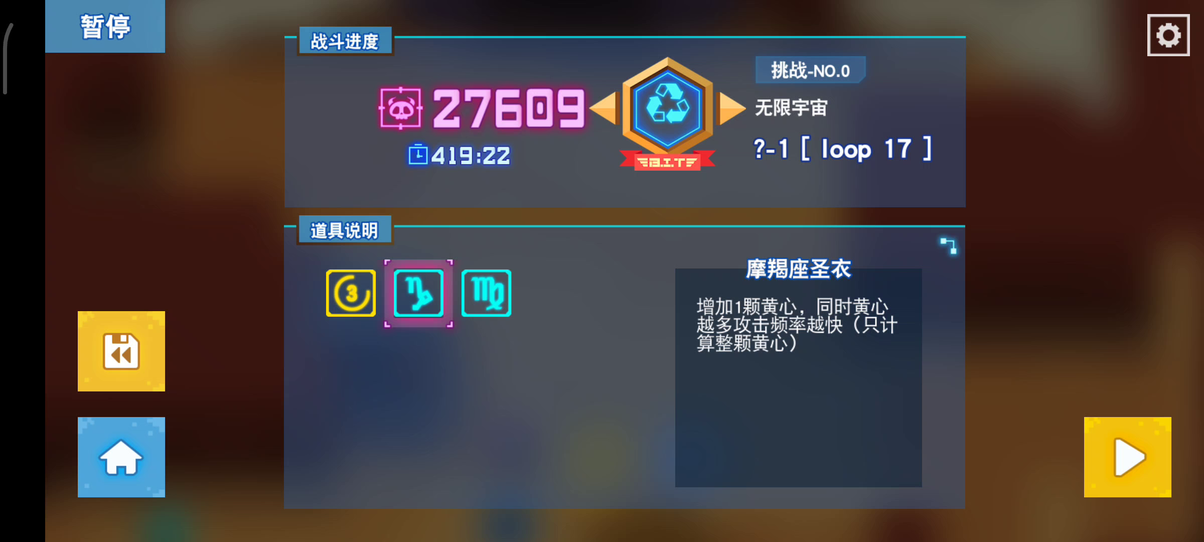 这无限宇宙整天卡bug 我这个黄心攻速就只有那么点吗?有的道具都没起到作用的 最常见的就是杀30个小怪给紫色箱子的那个道具 经常给我卡没了 你看我这个17个宇宙了 才那么点星币和电池...