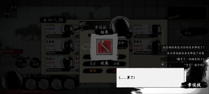 我是新手,我刚进游戏起名叫曹操,然后我就到处偷东西。 我一个初入江湖的小混混,没有家世,也没有师门,只能靠偷东西过过日子了,挖矿是不可能挖矿的,常在河边走,哪有不湿鞋,经常被打的全身是伤,收获也被仇家把我打昏抢回去了,但手艺还在,希望就在,哪怕成功率只有百分之一。另外我想建议一下,偷东西太无聊了,以后出个双修系统,能偷道侣最好了。