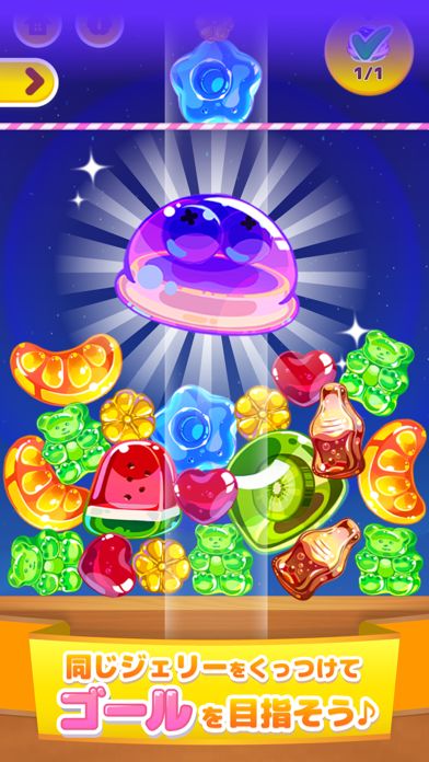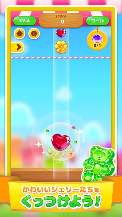 同じ種類のゼリーを落としてくっつけるシンプルなパズルゲーム!