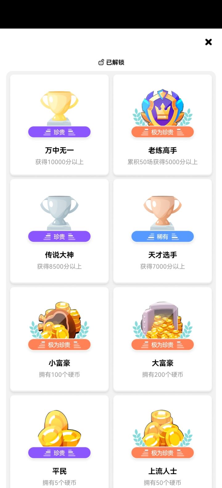 有几个隐藏成就,比较有难度的是达成1万分,其他成就在追高分的过程中自然能完成。