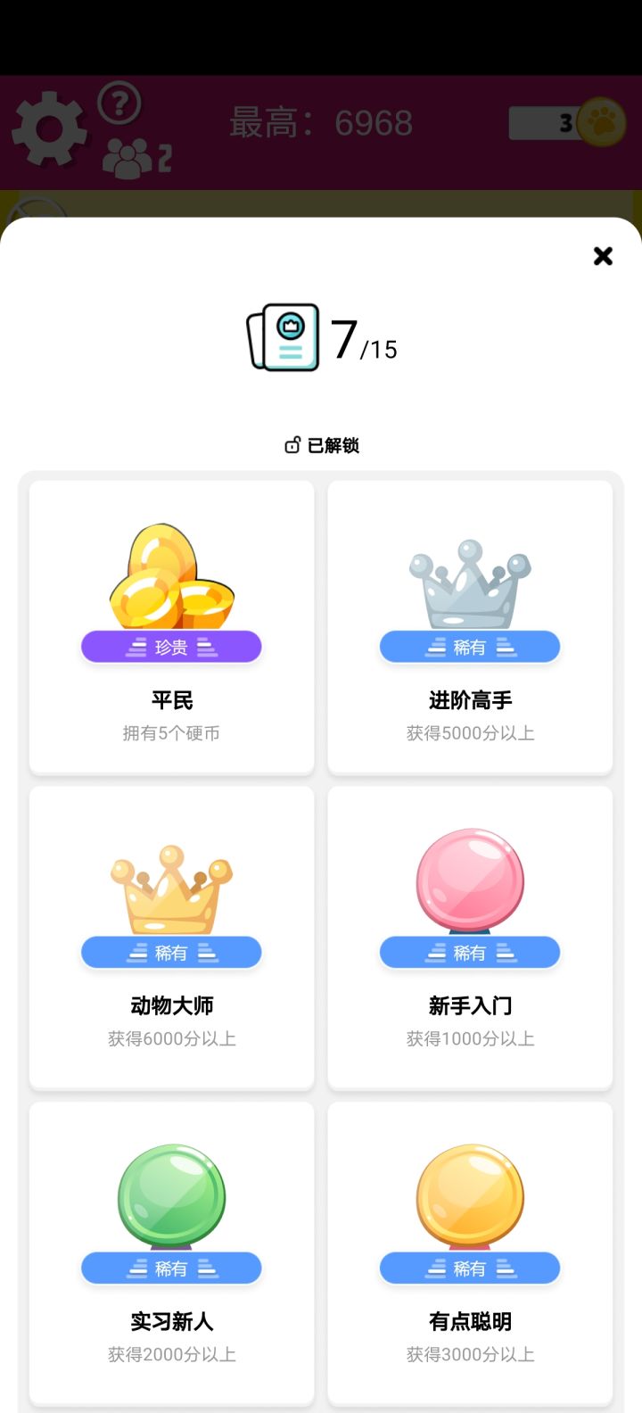 ⒌动物在位置被卡住前会旋转,有时候其实等它转一下就能合成,心急多下反而会隔开。
