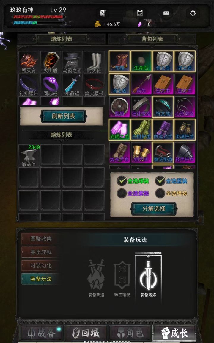 ①开局速升到3去公共副本挂机怪比较多升级比较快②背包上限有11页没有东西占用不会显示背包页面③清理装备可以在设置里面设置一定要记得打√还可以再成长里面更精确的选择装备分解熔炼④装备除了野怪爆还可以在奖池有锻造值获取锻造值可以在大厅商店金币购买或者分解装备获得⑤技能书需要在16级湿地以上的图都会掉落获取技能升级需要技能书和魔卡魔卡商人那边钻石买还有官方送一些(钻石32级才可以获取⑥