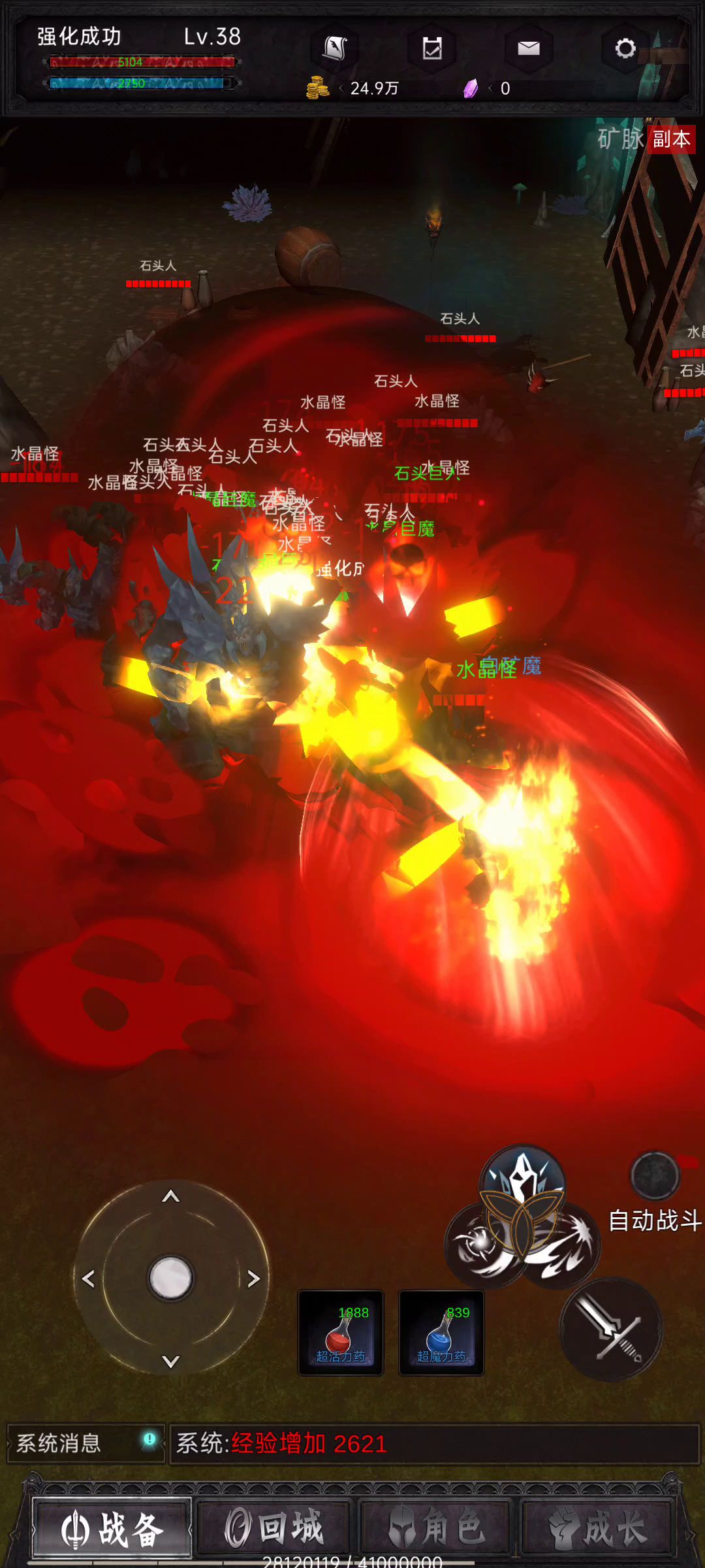 想通宵挂矿脉的朋友注意一下,这个图的BOSS有时候是2.3个一起过来打你,看看你们的战斗力够不够。不够的话通宵挂这也是白搭。