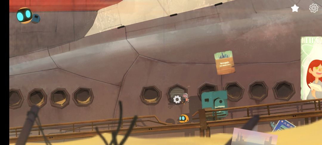 1.在艾彼和迪迪一起掉入深坑后,我们继续往右走。 2.之后我们进入了实验室,发现了一个只有大脑的人类--杰米,和杰米失去身子的方脑袋机器人。在一番操作后发现实验室的开启需要方脑袋的身份识别。 我们操纵艾彼从右下角的楼梯进入暗道,来到房间。中途我们发现了杰米的日记。 来到了一个非常漂亮的房间,能帮到我们的是床头柜上的平板,和箱子上的摄像头。我们操纵艾彼将这两个拿出来,并将平板交给迪迪。迪迪操纵机关