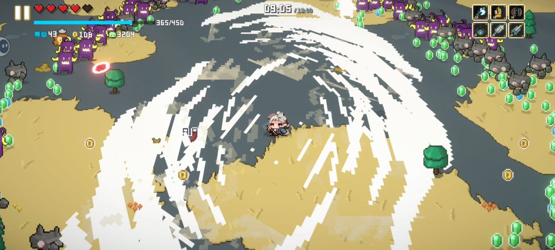 这关目前我有两种思路过关。①第一种:就是主修飞剑拼人品,飞剑-0.5秒CD吃到大概5个/6个以后就可以实现零CD无限飞剑,飞剑是所有成型最快的一个,但完全看运气,可能坚持不到就凉了。 ②第二种:就是跑酷流,前期先发育一会儿,拿闪电鞭,毒圈,炸弹,冲击波这种随身移动的,方便跑路,主修闪避和移速等保命技能,点满的话接近50%的闪避几率,当清不掉怪的时候(一般是第一个boss出现的时候)就开始跑。 注