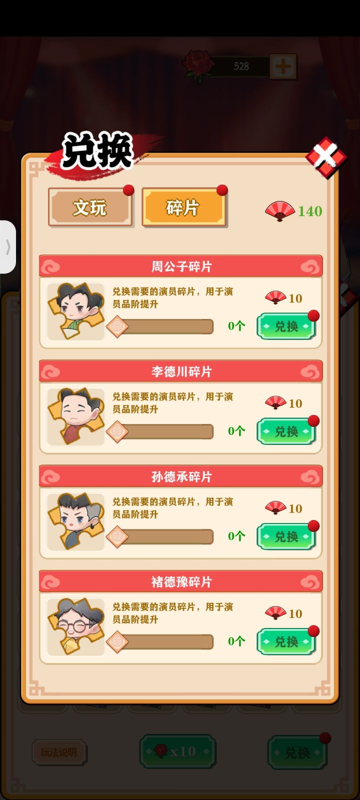 各位亲爱的馆主大人们:经过1个月的大调整,我们游戏现全面体验升级,增加各种游戏内容和关卡体验,各位馆主大人可以重新更新客户端上线体验。现更新内容如下:一.演员升级:● 演员从纯粹用碎片升级的方案,修改为通过金币升级,但在关键卡点通过碎片突破等级限制的方案●碎片通过合成系统获得二.增设文玩店: ● 新增文玩店区域,玩家可通过解锁相关文玩售卖设施来解锁文玩● 观众在听完相声后会有一定概