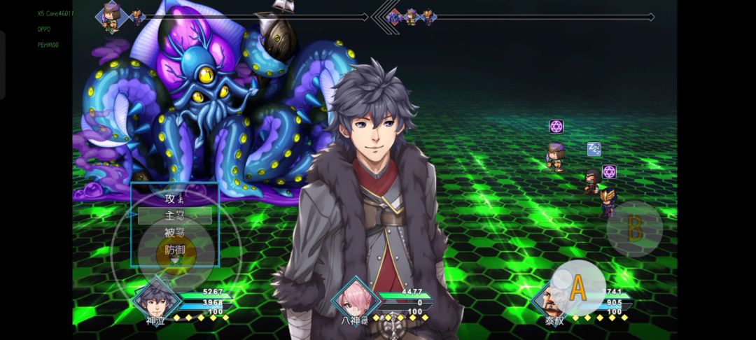 通关第三幕后多刷刷等级(刷到九千以上血量),主角必带三红装,染血战靴,鸿蒙徽记,冠军称号,巫蛊术(必须),缄默(必须),巨峰(必须)。 主角开局放缄默,沉默到就可以让另外两个角色用威力最大的招式,在章鱼的精神侵扰放出来之前尽量多输出,主角不断重复缄默,巫蛊术和其他技能,cd好了就用,雷光拳不需要使用,只剩雷光拳的时候改成使用防御(防止章鱼使用精神侵扰),巫蛊术时间过了还被boss打了那就用一个灵芝,这么重复可以磨死章鱼(有概率被一万伤害精神干扰突然打死)。