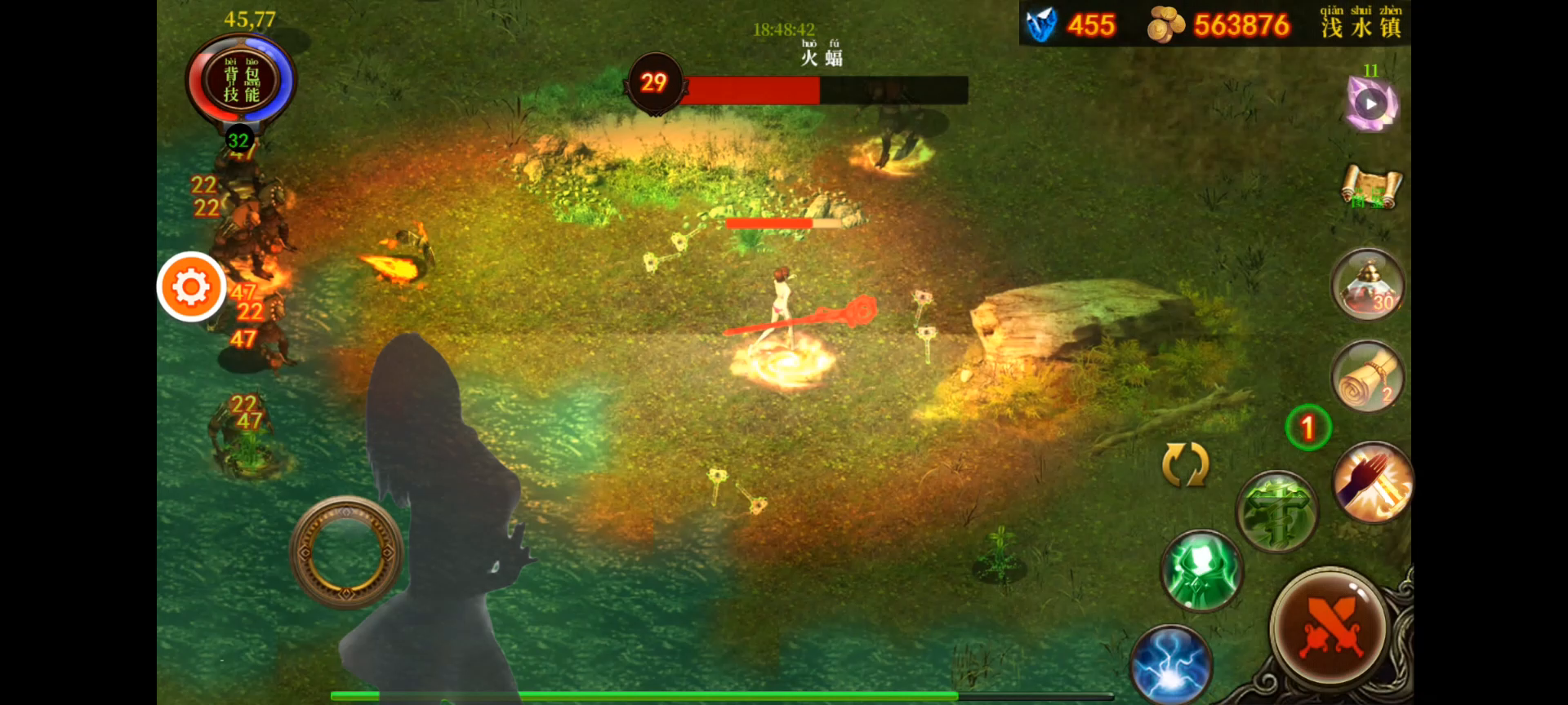 嗯,伤害要控制好,不要一发剧毒星星秒了小怪,然后s型走位,把沙王拉到中央区域,点一下尸爆,ok,捡东西。