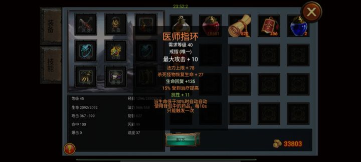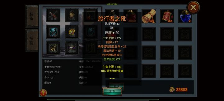 来一波打目前版本最高级boss【40级】的视频吧 刷级刷得有点累,【无敌斩攻速回血流】,攻速叠到300以上,无敌斩必加,回血光环必点,其他就是被动超凡,回复增益点一些。只要攻速越快,回血光环恢复生命就越快,但是蓝量得要有,所以百分比吸蓝也很重要哦。 而支持这一切都还是装备,但是我们的装备纯粹而容易获取,并且可以随意搭配,不会显得单一。 主要选择有词条为:纯物理攻击(越高越好)、攻速、百分比物理伤害