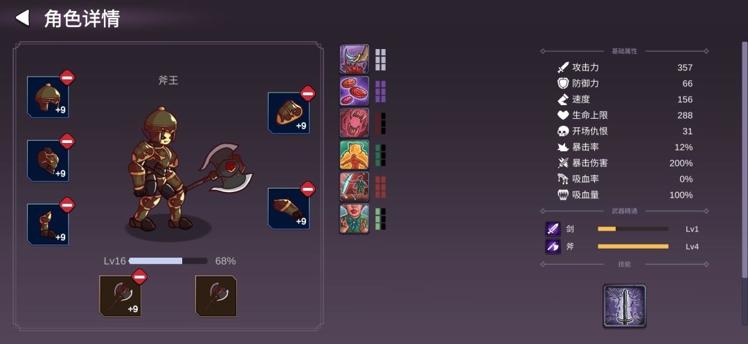 刚下载游戏只有士兵和牧师,建议直接用种子“2”,开局旁边问号可以领到金牛斧给士兵用,大大降低了前期的过图难度。因为新人场外无加成的士兵很难单刷,所以直接跳过积累水晶阶段,上满星斧王攻略。水晶的花费顺序:把场外属性加成的攻击点满,投资提升到10(斧王8牧师2),买斧王升到满星可以刷羁绊,建议刷个“孤星”尽早凑齐。场外加点优先级:攻击-速度-防御-生命。—————————————————斧王: