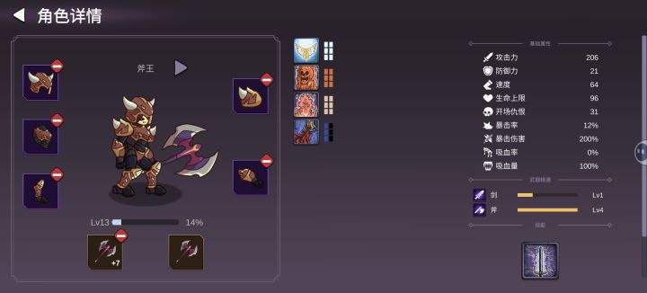 刚下载游戏只有士兵和牧师,建议直接用种子“2”,开局旁边问号可以领到金牛斧给士兵用,大大降低了前期的过图难度。因为新人场外无加成的士兵很难单刷,所以直接跳过积累水晶阶段,上满星斧王攻略。水晶的花费顺序:把场外属性加成的攻击点满,投资提升到10(斧王8牧师2),买斧王升到满星可以刷羁绊,建议刷个“孤星”尽早凑齐。场外加点优先级:攻击-速度-防御-生命。—————————————————斧王:
