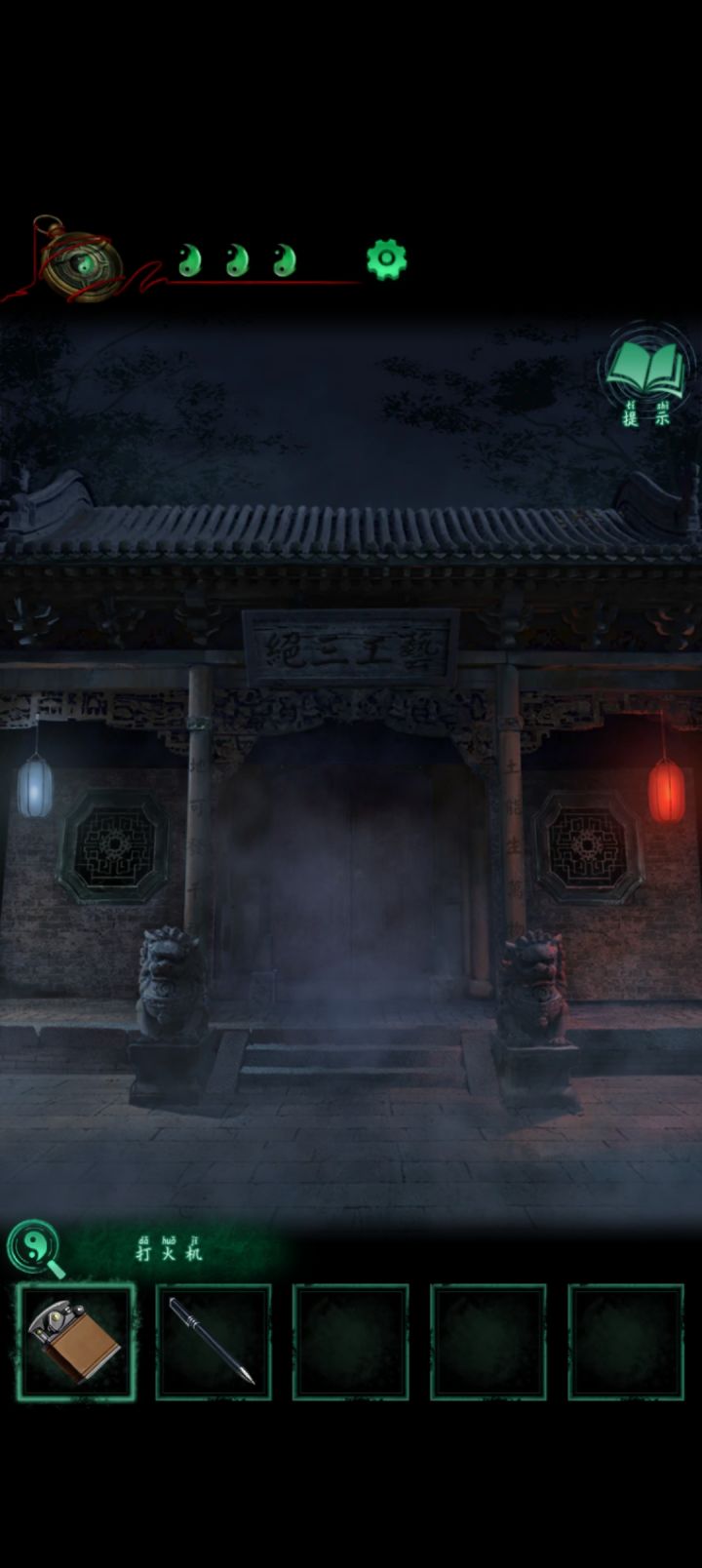 打火机亮灯九鬼叩门左左右左右左右右右开门点亮蜡烛轿子里面拿干净镜子放桌上再去左屋捅窗户根据纸上去院子假山上依次点击拿出三叉戟院子捅镜子进去拿出石桌边狮子嘴里的碗点水塘里的电话点上面窗户偷看纸人洗澡回到最外面将电话外壳放左边狮子上转动的时候注意手别出圆盘范围拿到钥匙近里屋进屋点右下角拿牛头再点供桌看线索回到盒子处解密(转的这个我智商不够为了老婆看广告了)回到最外面看柱子的字用刚