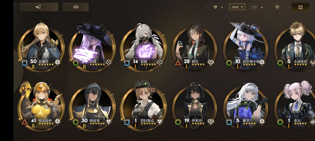 1.目前不要花太多资源在5星和一些目前就业不好的6星上,我就是前期看着实力榜练了很多5星,又不能重置,看着挺闹心,任意双6星狙击(做好有灵媒)+四星以下盾+刀锋+四星以下奶或者工具人足以推完主线。刀锋推荐莉贝卡,四星以下的刀锋也是可以的,只是没有莉贝卡稳,三星的威廉就很不错。 2.队伍里至少要留一个50级三阶的四星工具人,因为后面的副本,精英怪都是有特定buff去增益的,比如需要挂电,挂火,失衡等