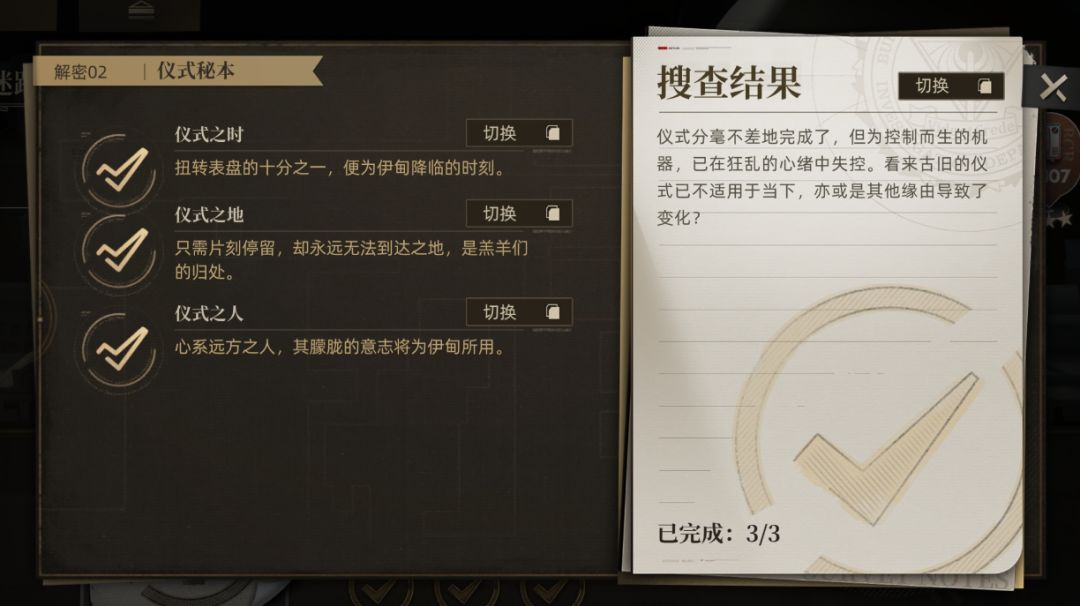 对于事务所档案残片的解读过程和方法,相信萌新们都会有很多困扰,都或多或少觉得不便。下面我就谈一谈我的感受和玩法。 [心动小镇_微笑] 作为一个入坑3个多月的老玩家,起初我觉得这个解读界面很不舒服,每次页面里给的人物不是缺这就是缺那,还得滑动往后找其他人,后来经过几天的努力,我干脆把所有探员都升到30级2阶,这下好了,再也不用滑动了,,,才怪 [心动小镇_生气] 如图3所示,每次解读时,默认第一项,