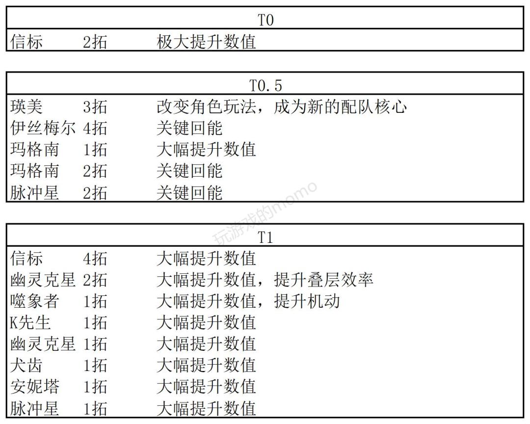 仅单个拓变推荐,不考虑前面的拓变成本。 也就是说,如果刚好差一个拓变,可以参考这张表,而不是让你强行抽到这个拓变[表情_捂脸哭]。