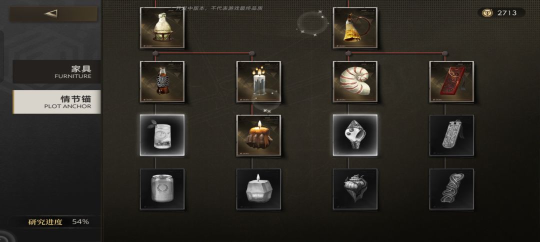 紫蜡烛消耗:20蓝回声(思绪) 10黄回声(梦境) 2级事务所后的塑形强化→2级书橱→蓝色情节锚 完成以上后就可以进入办公桌科技了,等级6以下的沙发转椅写字板科技,会大大提高卖钱的效率,点满后半天的8-9个事件可以变成11-12个事件,不算分解基本刚好凑够一个紫色情节锚的花费 下面似乎没有这样大幅提速的科技了,余钱按个人情况: 提炼强化3级——稍微搭配下应该都能稳定负担全紫生产线 塑形强化4级——