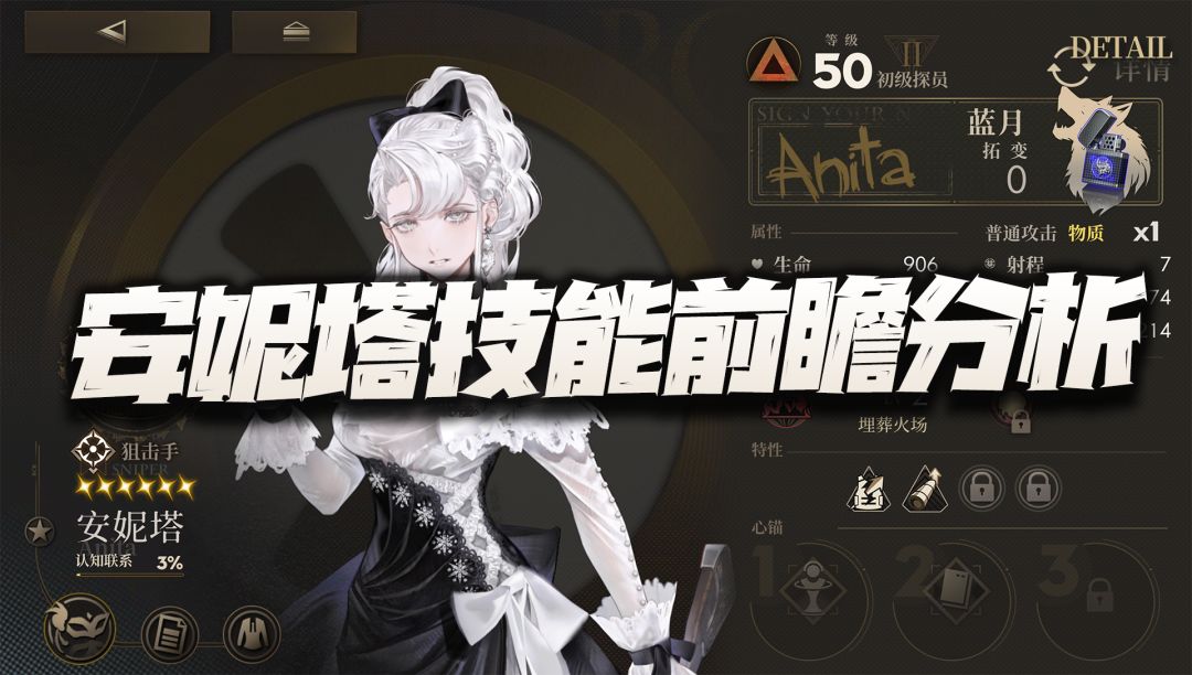 大家好,我是正在嘎嘎干饭何二维一。今天的攻略咱们来简单的聊聊全新的6星角色,安妮塔的技能前瞻分析,希望能给大家带来一些小小的帮助。 首先作为单发狙击手,安妮塔的满级攻击属性是当前版本仅次于第一名银枪的1300多点(银枪是1400多点),这也为她后续的焦热输出提供了一定的帮助,毕竟焦热伤害是按照施加者的攻击比例来进行无视防御出伤的。 接着安妮塔的移动力为5点,攻击范围为7点,同时关键的普攻威力为10