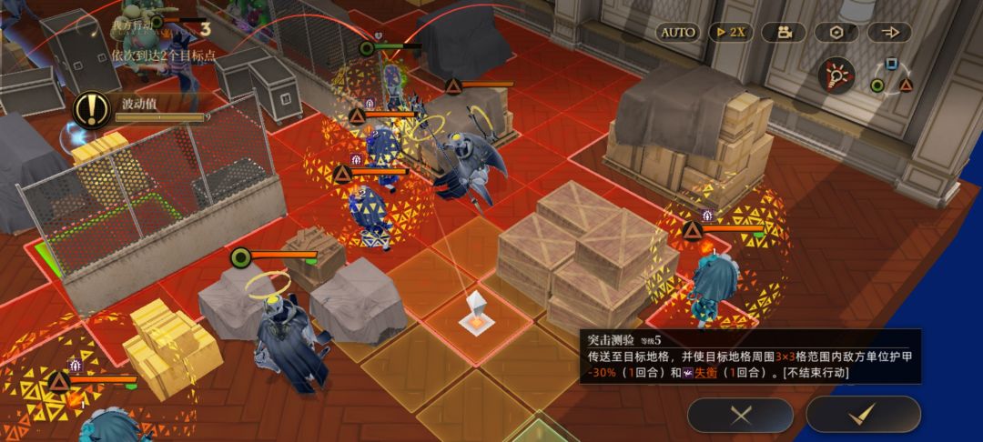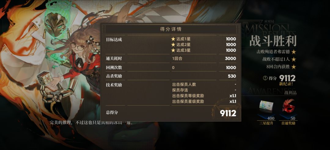 小怪关最后一关,以及配得上它的难度,无核队打得牢底坐穿😥怪多图大,还要分出aoe去打箱子,距离、血量、回转、捡道具都要处理好。 配队上,除了伊德兔子两个四星常用aoe外,考官也可以在这关对策。考官传送+aoe适合本关跑图打箱子,吃道具后还能补输出,都快赶上德洛了(德洛自buff 40%,考官吃两个星星也有20%)。奶位需要夜莺首充,开局放技能清两组箱子。 个人感受,我游近期小怪关比boss关好玩,