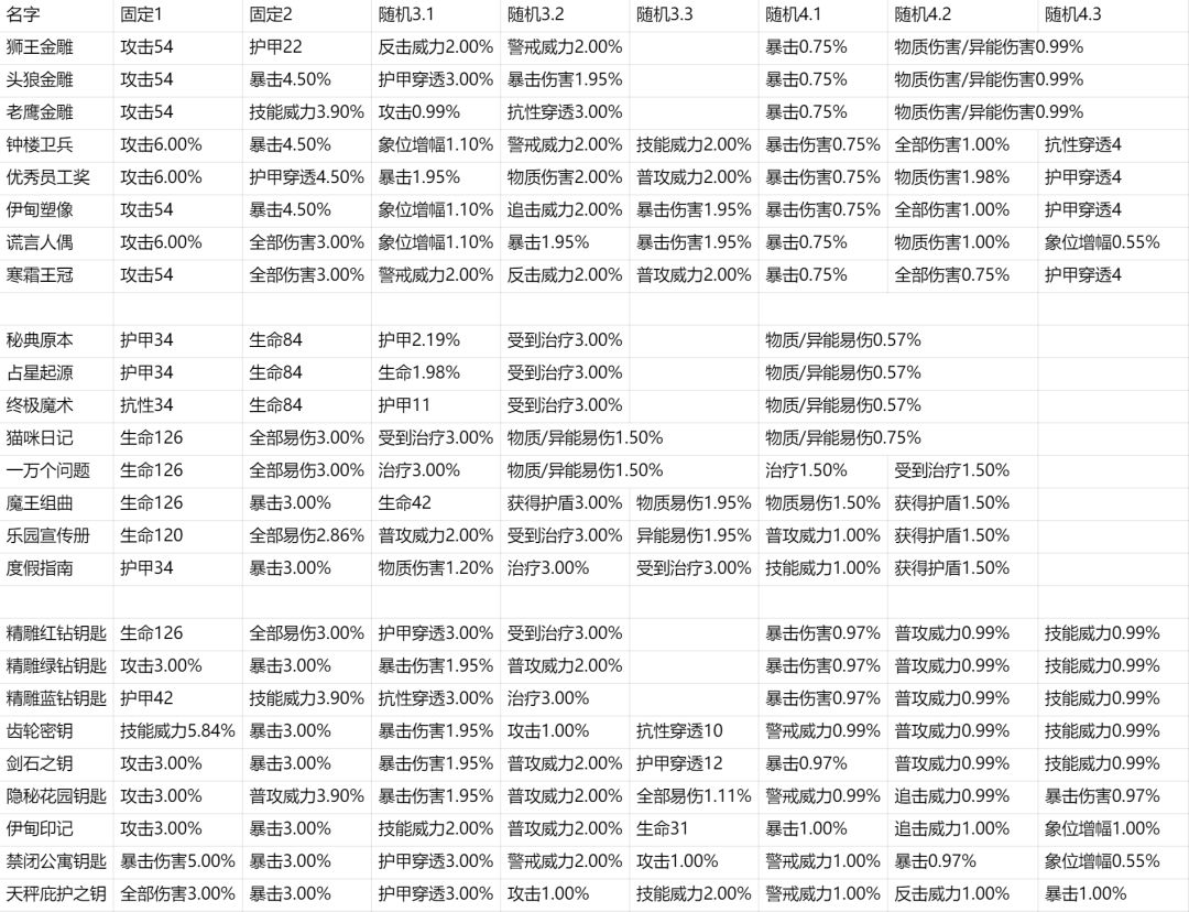 大部分数值的30级就是3.33倍,自己乘就差不多了 第二套心锚几乎没用,所以没做收录