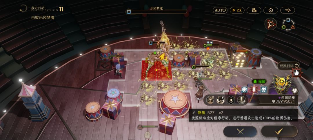 共8t。练度:技能装备满。 思路: 1.开局清理小兵和电狙 2.盾卫找一块白烟地块待着,嘲讽白星和刷出的小怪 3.电狙打死后,找一个远一点的红色机器人清理掉,降低二阶段被围攻的负担 4.全力输出白星。期间靠带电弹射和aoe顺手消灭小兵 5.白星第二管血的时候,科长开大爆发打死。输出能番一倍多,一回合就能打掉大半管血;这回合躲着点红色机器人,下回合结束战斗 操作细节: 1.考官一技能传送减甲,以及二