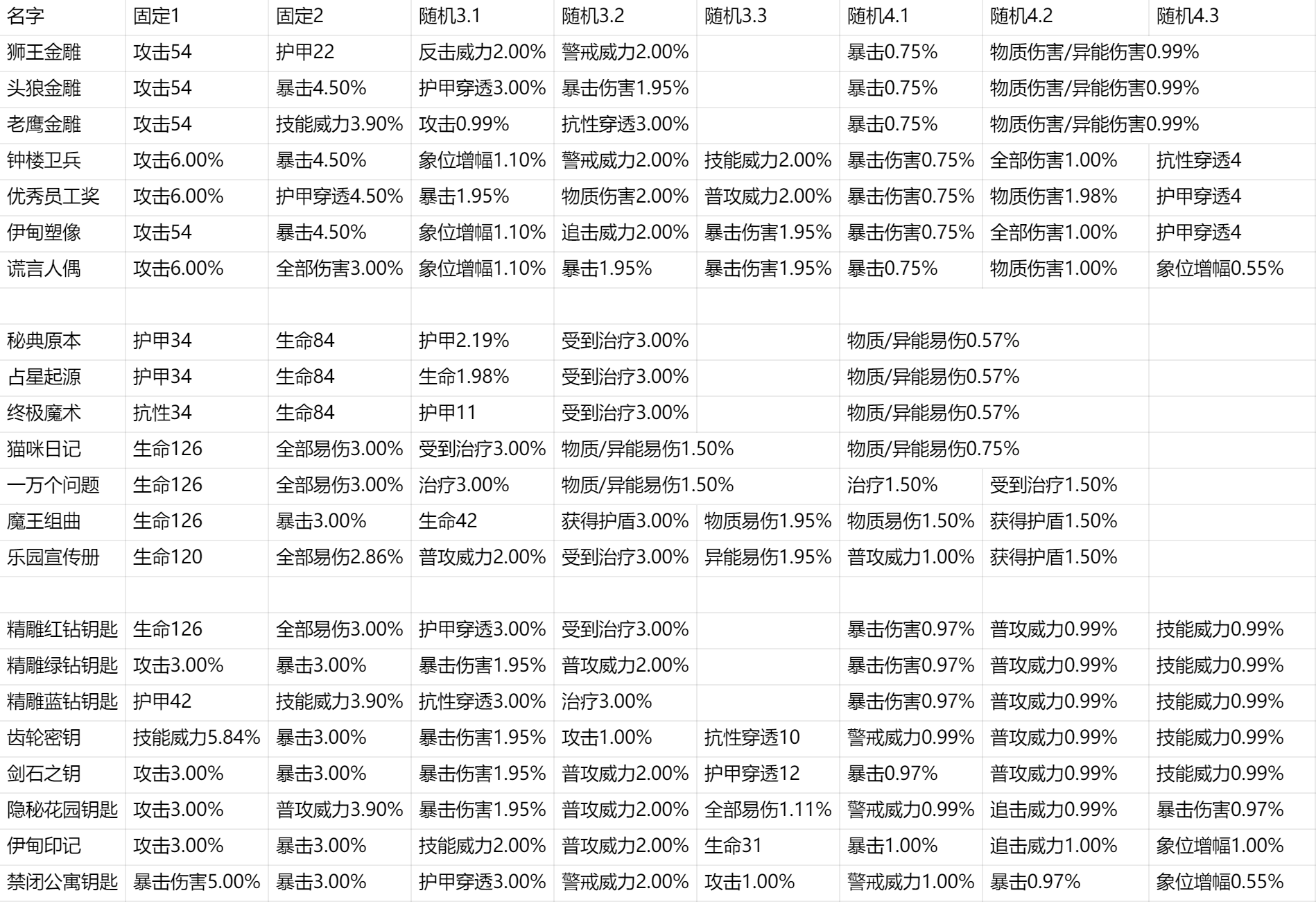 大部分数值的30级就是3.33倍,自己乘就差不多了第二套心锚特性几乎没用,所以没做收录