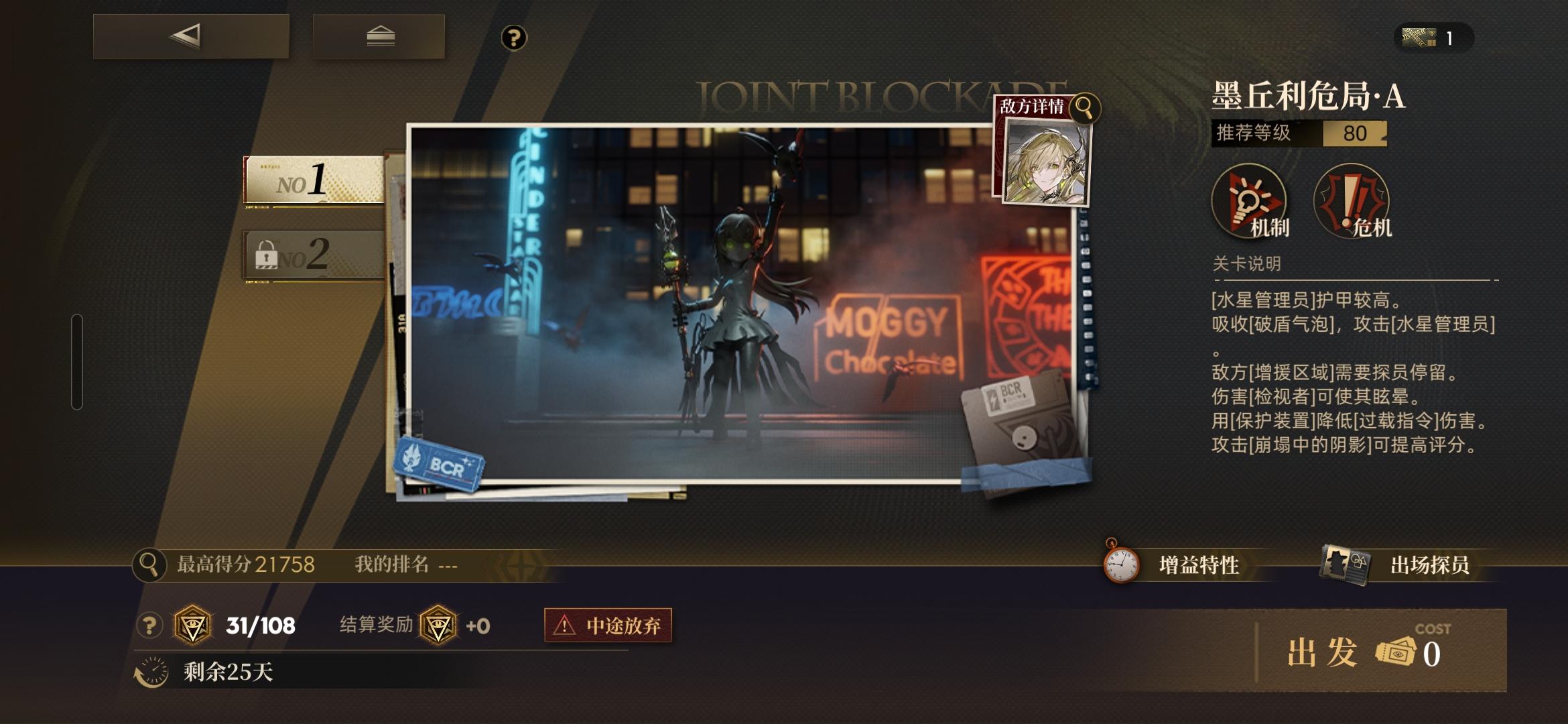 推荐等级满装。图2没找到看录像的按钮,手打的[表情_捂脸哭]还请耐心观看。 危机:普攻带电、象位。 总体上输出和生存压力都低于图1。电狙单核输出比图1伊德高很多,还能吃到女主迟滞的拐,吃buff再动伤害爆炸;夜莺被动群体上战地医护,也能保证生存。 有很多技能/被动可以减伤,轮流使用分摊伤害:维罗偏斜1、女主技能偏斜1、电狙/13号/女主护盾。 注意夜莺作为唯一的蓝钥匙工具人,要尽量保持半血触发灵泉