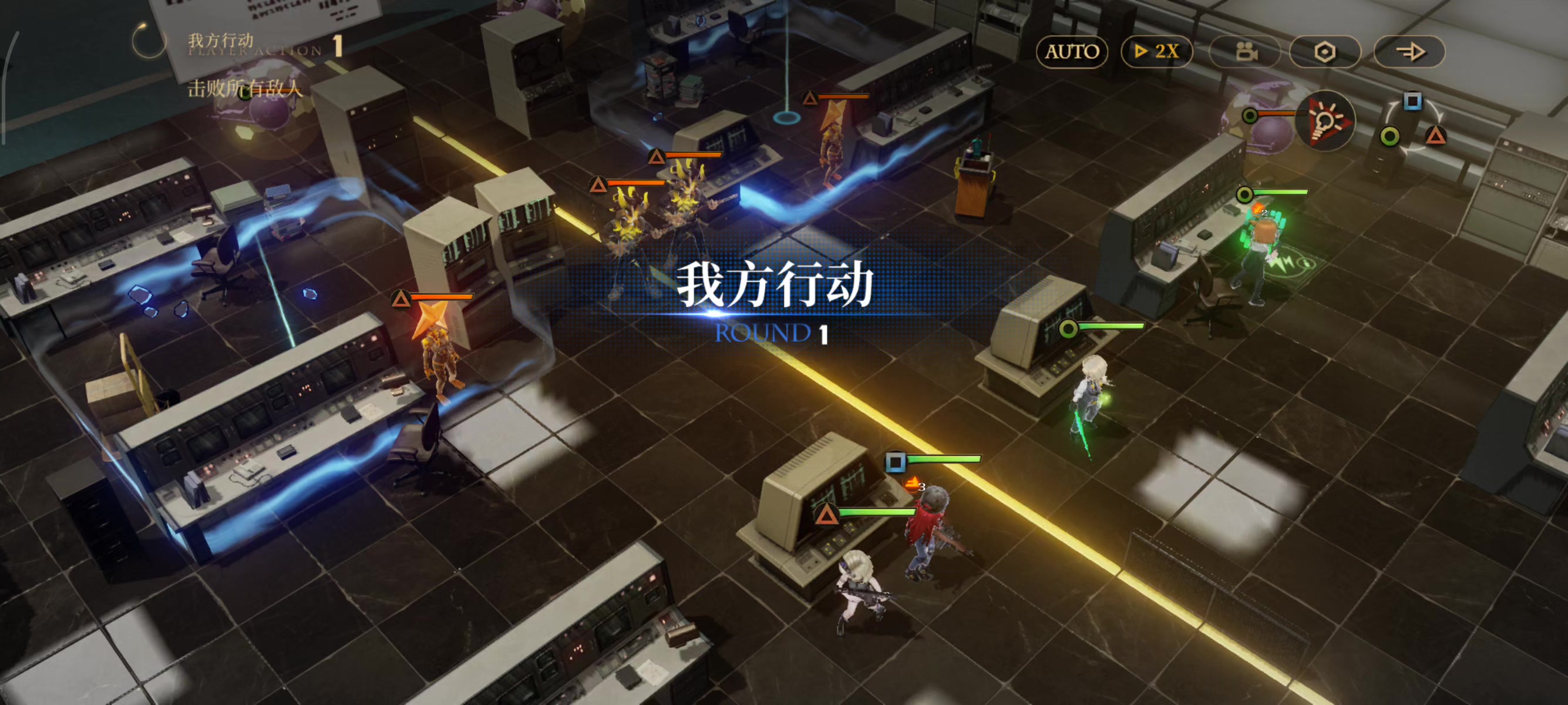 推荐等级,装备满,奶法带蓝钥匙。 开局直奔出生点右上侧的电脑,获得全掩体阻挡星星的aoe。小怪不用急着清,会自己走过来。一部分怪会主动撞在黑洞上,包括新刷出来的一只莽兽,没有威胁可以最后再收掉。 星星每回合掉22%血,所以左下的星星不用打会自己炸掉;右上的星星是中途刷出来的,回合数不够自爆,需要主动削一点血。星星退场会额外造成一次aoe,一定要提前站好掩体,奶位要保持血量健康,有战地医护更佳