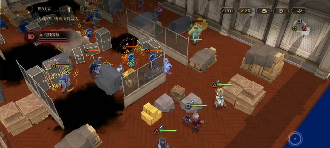 本关是新禁区4张图里面最难的,也是最有意思的。探员分居上下半场,需要走位协调好输出和生存。这关的战棋特色很鲜明,走位会直接影响战局。 思路: 1t:上半场避战,下半场输出。 上半场:考官、德洛。考官传送下半场,和其他探员会师;德洛避战,并控住一个喷火兵,这样就保证了全员生存。注意考官要站掩体,避免被绿娃娃打死 下半场:利用电狙爆发输出和兔子aoe清场。下半场虚仆、娃娃、安卡保镖可以全清,后面就好打