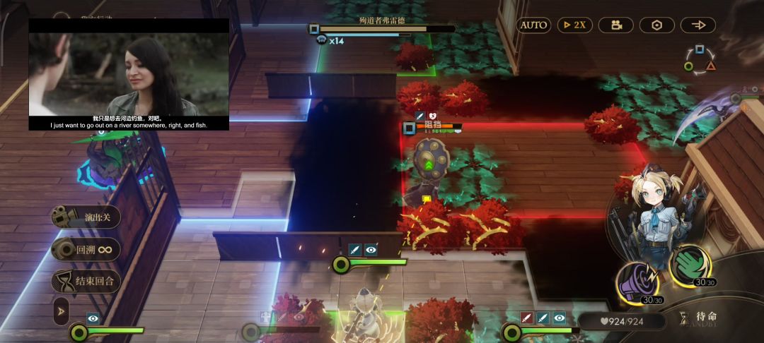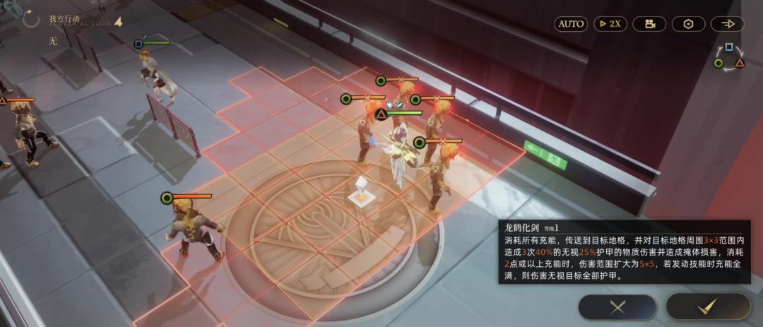 推荐等级80,装备尽量高。低星无法速杀,需要走位拉扯。未用消防员,因为是更新前打的。更新后消防员可消地块,应该会更容易。 要点: 1.对策偏斜。boss站在触手地格获得3偏斜,不吃推拉、传送,更新前也不吃清理地块,因此需要勾引他走出地格。 boss会尝试绕过掩体让目标暴露,我们让盾卫贴靠掩体嘲讽,故意留出几个暴露的位置吸引boss走过去;其中如果有不想让boss去的位置,就让探员占住卡位。 2.站