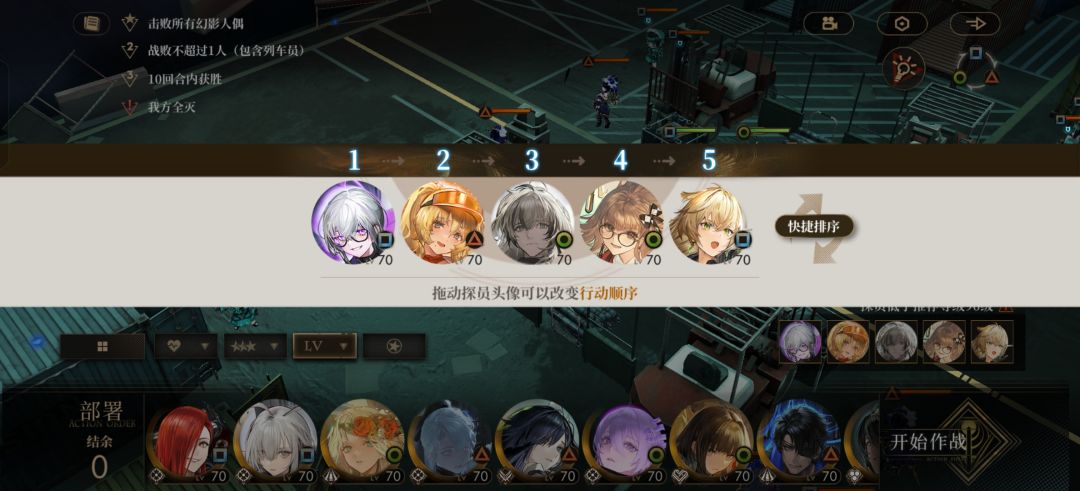 录的比较早之前给朋友参考用的。部分角色需要关键的能量拓变。 有几关比较简单,打法也多(甚至只上3~4个角色都行),我是懒得换角色直接就上了。 相对最难的就是安卡那关了,当时想稳定满分必须用一次技能反死怪,录的时候是拿到警戒次数+2了,实际上不需要也行。支援的5个,前面2个不被打死也要被反死,后面3个靠上的2个会被雷娜塔打死,下面那个跑过去会被劳拉打死。 最后的boss关只能5回合打完9000分,即