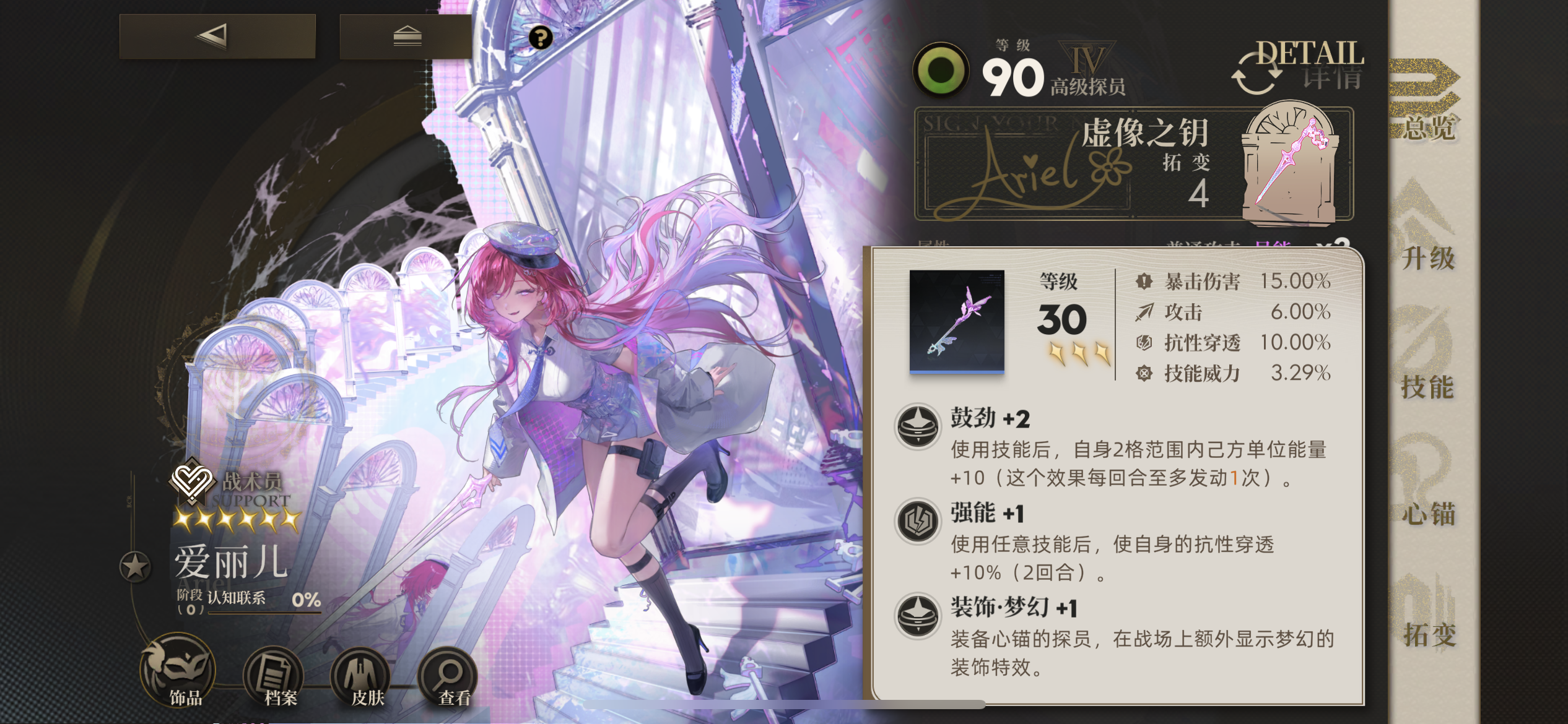 依旧全0拓打桩 队伍配置:K先生+劳拉+幽灵克星+犬齿+爱丽儿 和之前发犬齿试用那一期思路差不多 (犬齿吃幽灵克星的额外警戒次数,每回合打2次警戒;劳拉带公寓钥匙,每回合开双技能叠危险通行层数;幽灵克星带蓝钥匙帮助队友回能;K先生带天平庇护钥匙和指挥官棋子打输出,且刚好可以在第二回合开出第二个1技能。) 爱丽儿挺适合这个队伍,爱丽儿自身给队伍带来的暴击较低,而犬齿和劳拉刚好不是那么缺暴击(算上带电