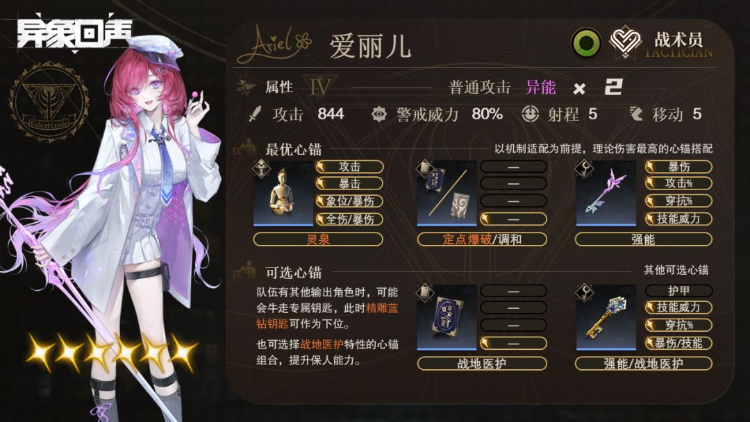 爱丽儿几百的盾,套在敌人身上相当于没有,但是可以直接让库珀和白星的伤害激增,我说策划还是太不敢想了。以下是个人碎碎念:虽然说爱丽儿强度肯定是有t0,但在我心里算是爆冷了。我本来预测一个能打输出有策动的战术员不就是伊斯梅尔上位吗,结果数值远不如伊斯梅尔慷慨。还期望着能不能拯救神秘异能队,现在看来也是被“限定”给框住了,明明给个30%技能威力加成就能解决的事,不知道是不是又想着泛用性了,我真没