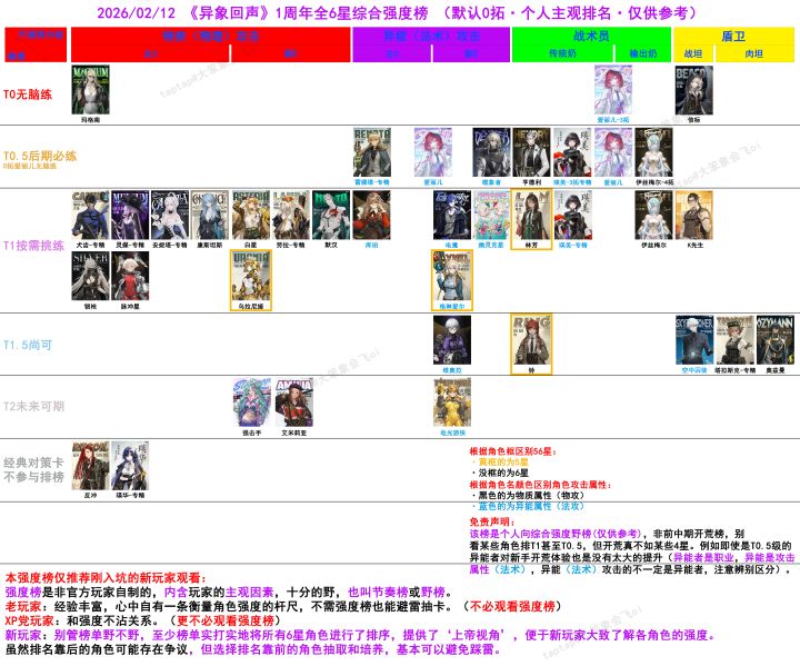 【异象回声】1周年全6星综合强度榜已经在旧贴更新