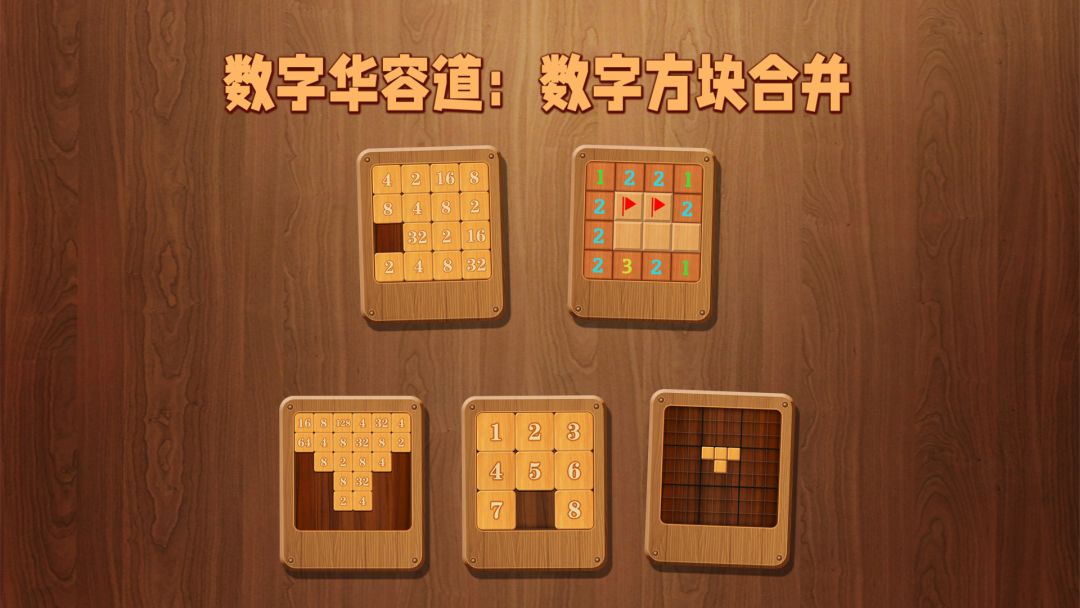 这是一款多个木块风格的小游戏的合集游戏,包括数字华容道、2048、数字合并射击、方块拼图、扫雷。