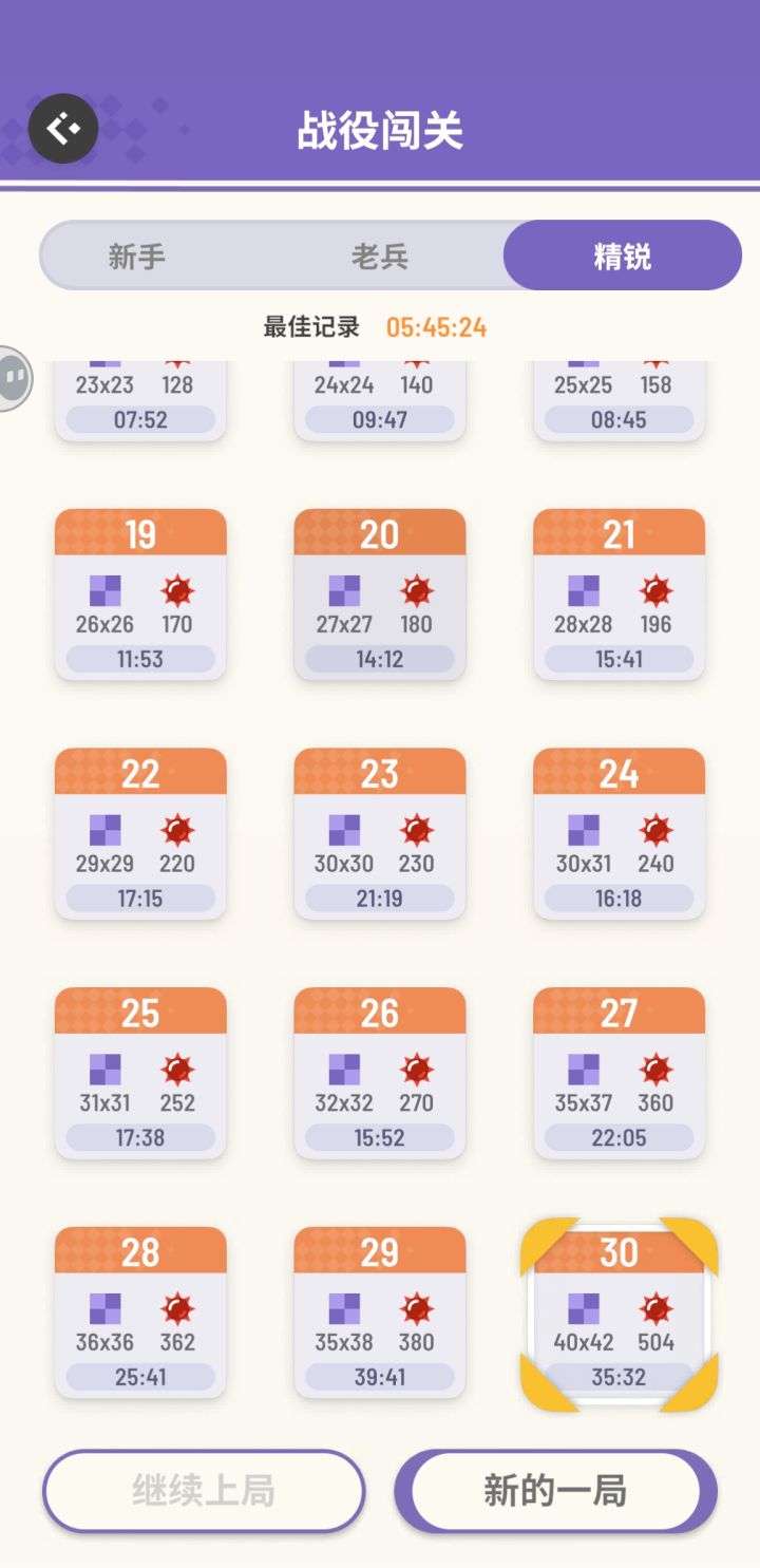 在开始游戏后,格子的显示就会变得不清楚,即格子之间的间隔不明显,这是目前几乎所有皮肤的通病。但将它放大看,又容易因为惯性误以为屏幕边界就是地图边界导致误判,目前我也没有太好的办法,如果可以,就把每个数字设计一个颜色并填满整个格子,中间用白色写上数字,或许会好认一些。