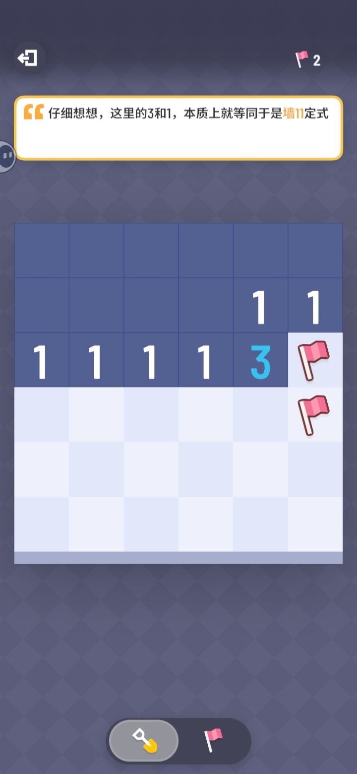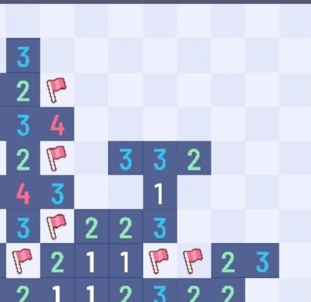 完整标题:无猜扫雷中必须使用剩余雷判定是否一定是最后一步? 假设我们使用数字一直推理然后彻底推理不出来了,那么说明此时必须使用剩余雷判定,这个时候是不是最后一步,如果不是,有没有反例局面可以给出? 这是我给出的证明: 0.设当前所有未打开的格子为集合S。 1.假设剩余雷判定不是最后一步。 2.那么它只能确定部分剩余格子的情况,设其能够确定的格子集合为S1,不能够确定的格子集合为S2,此时S1+S2