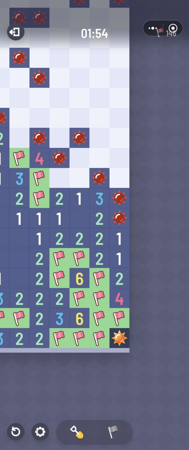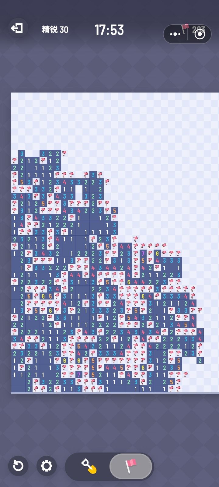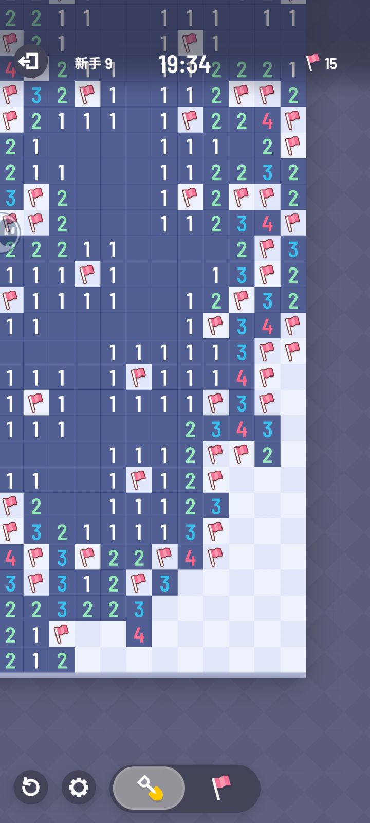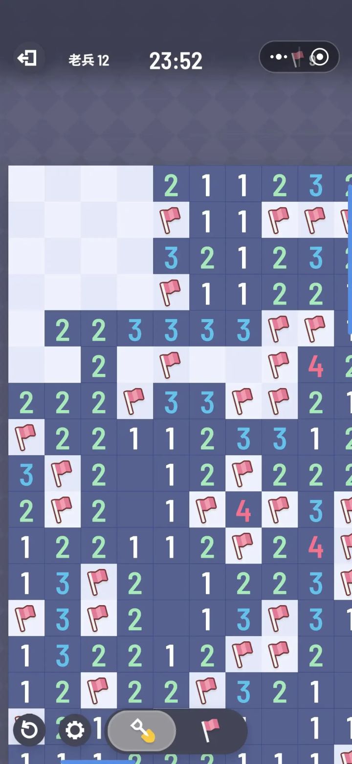 从小玩到大的扫雷,一直玩的win7那个默认版本,因为手机不方便所以没在手机玩过,突然给我推了个无猜的扫雷,一下子爱上了,终于不用琢磨半小时最后落得一个二选一无解了。后面是一个小建议,也是win7版本带有的。新手玩的少量格子模式就算了,像地狱模式这种格子多的,其实可以出个加快清图的设定,比如周围有1个炸弹,而且有五个未开格子,那我给其中一个标棋子之后,还剩下四个一定是没有的(从我的视角),所以我