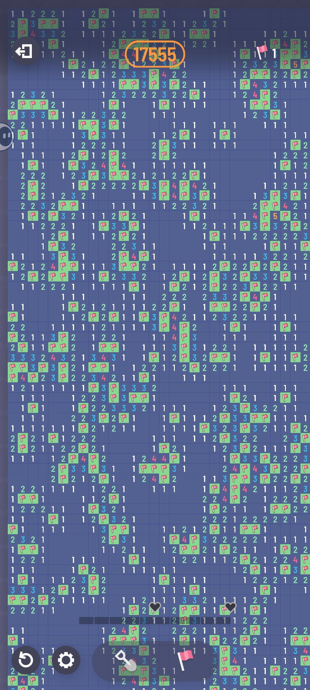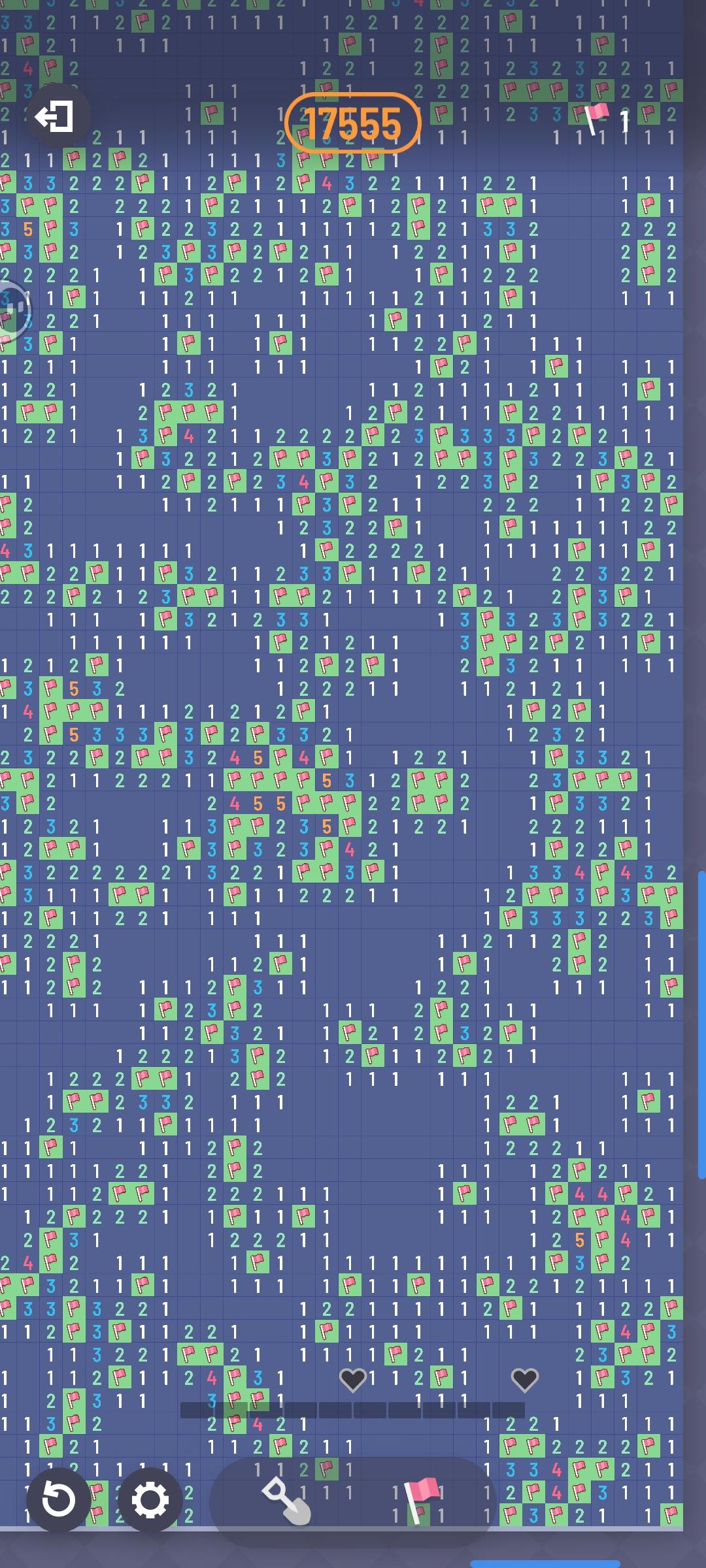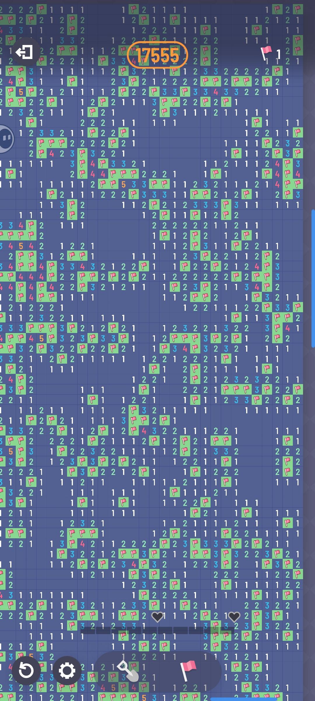 100*100,2500雷的图就剩最后一个雷了,这种被围起来的我是真没招…听大佬的加上整个地图的图片谢谢大佬们!!完美通关啦!