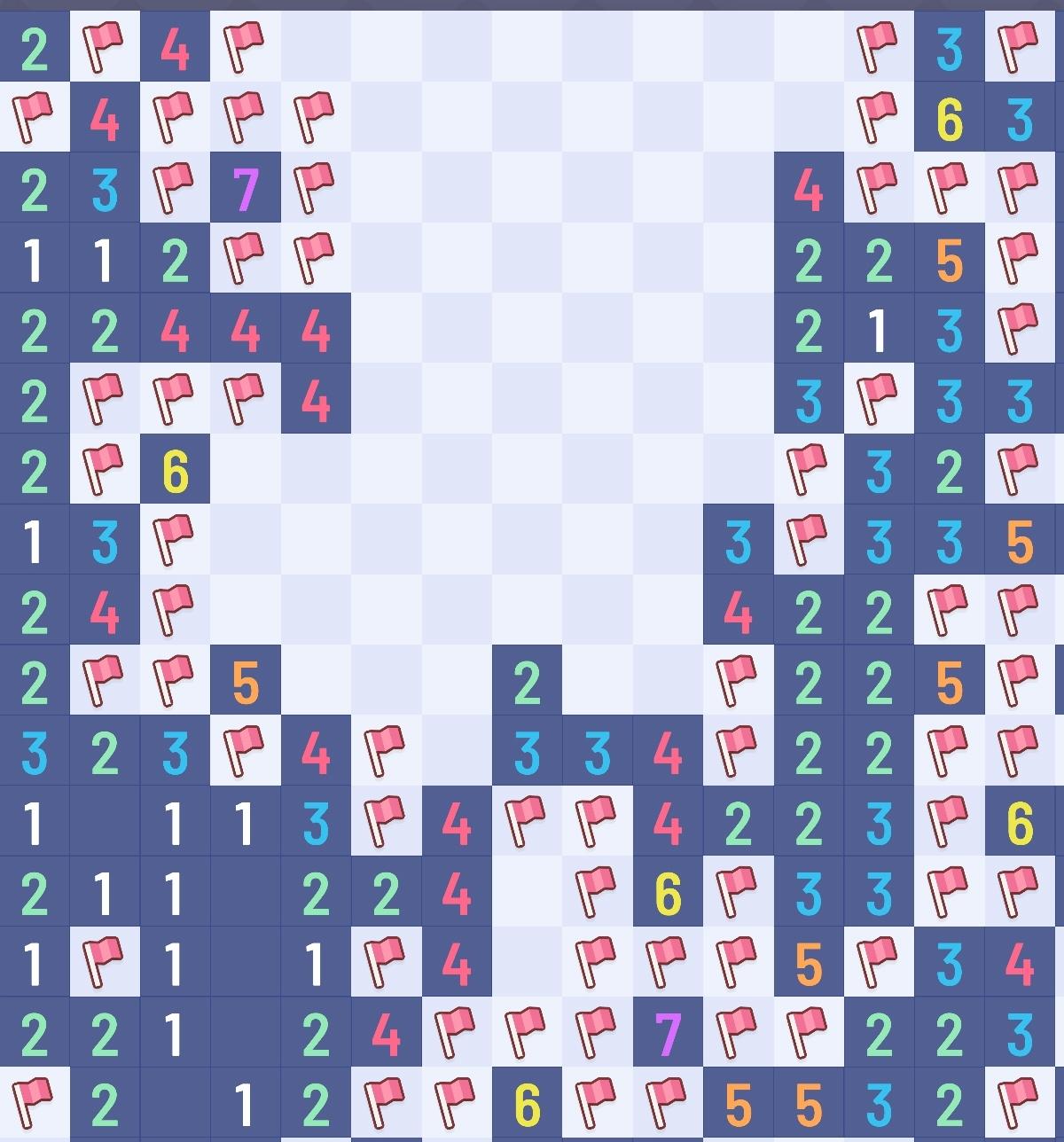 求助,就剩这两个位置了,实在是想不出来谁是雷😭有没有大佬救救二编:第一次求助没什么经验,感谢评论区提醒,补充p3到最后是全图,100*100的图太大,只能分开截了,看起来可能有些辛苦,提前滑跪了orz三编:截图不小心碰到了所以重截了一轮回来,已经全部替换为剩最后一个的……!