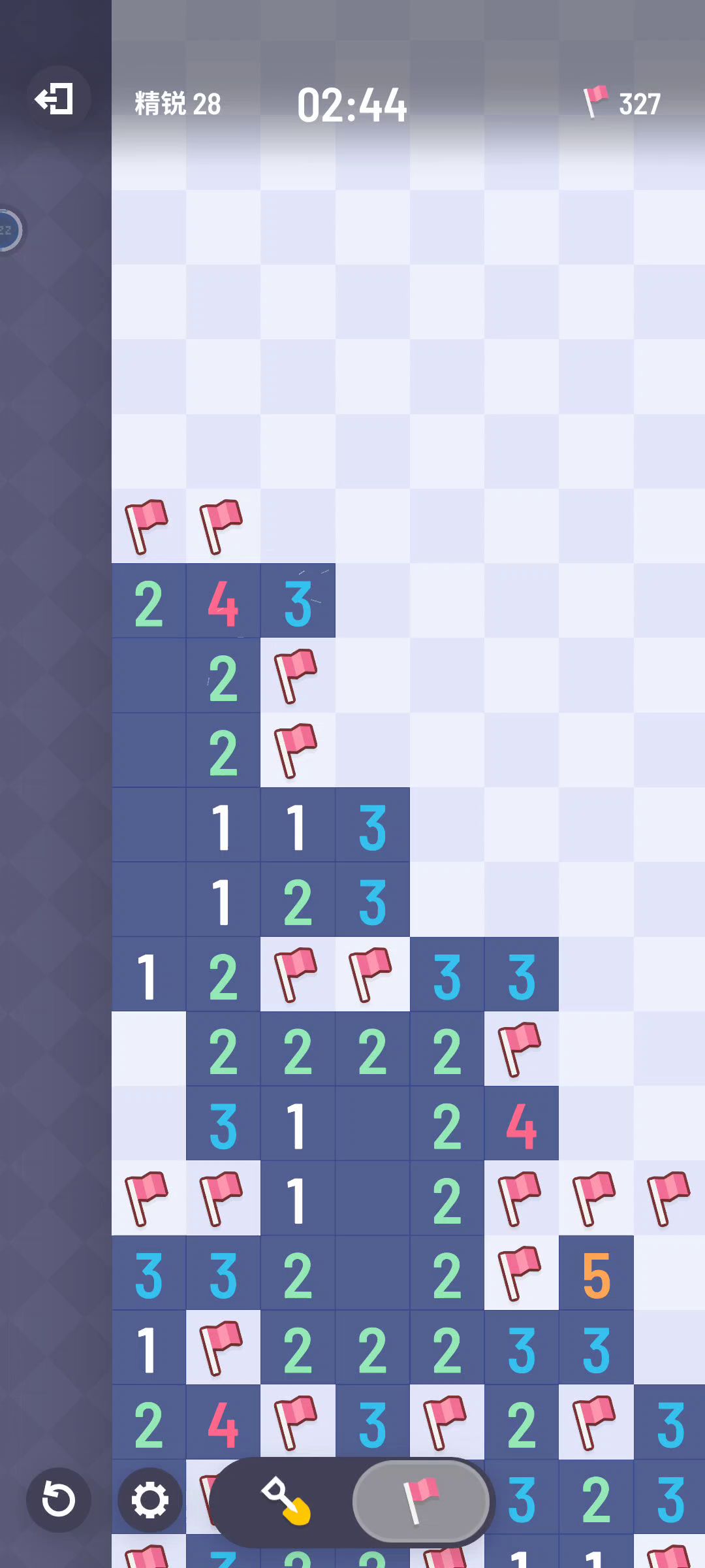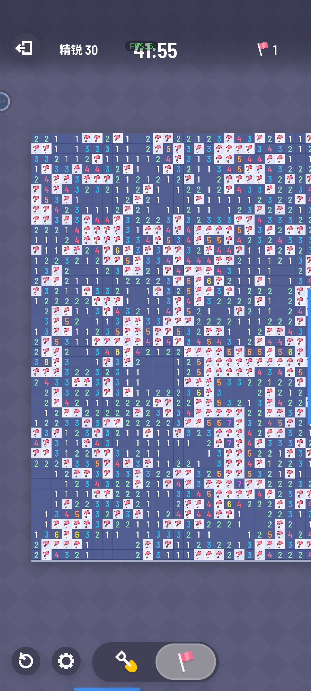 四格开局,两次双爆,如果可以在一次双爆时间内扫完所有雷,应该还能提升成绩,可惜我比较菜,只能分两次扫
