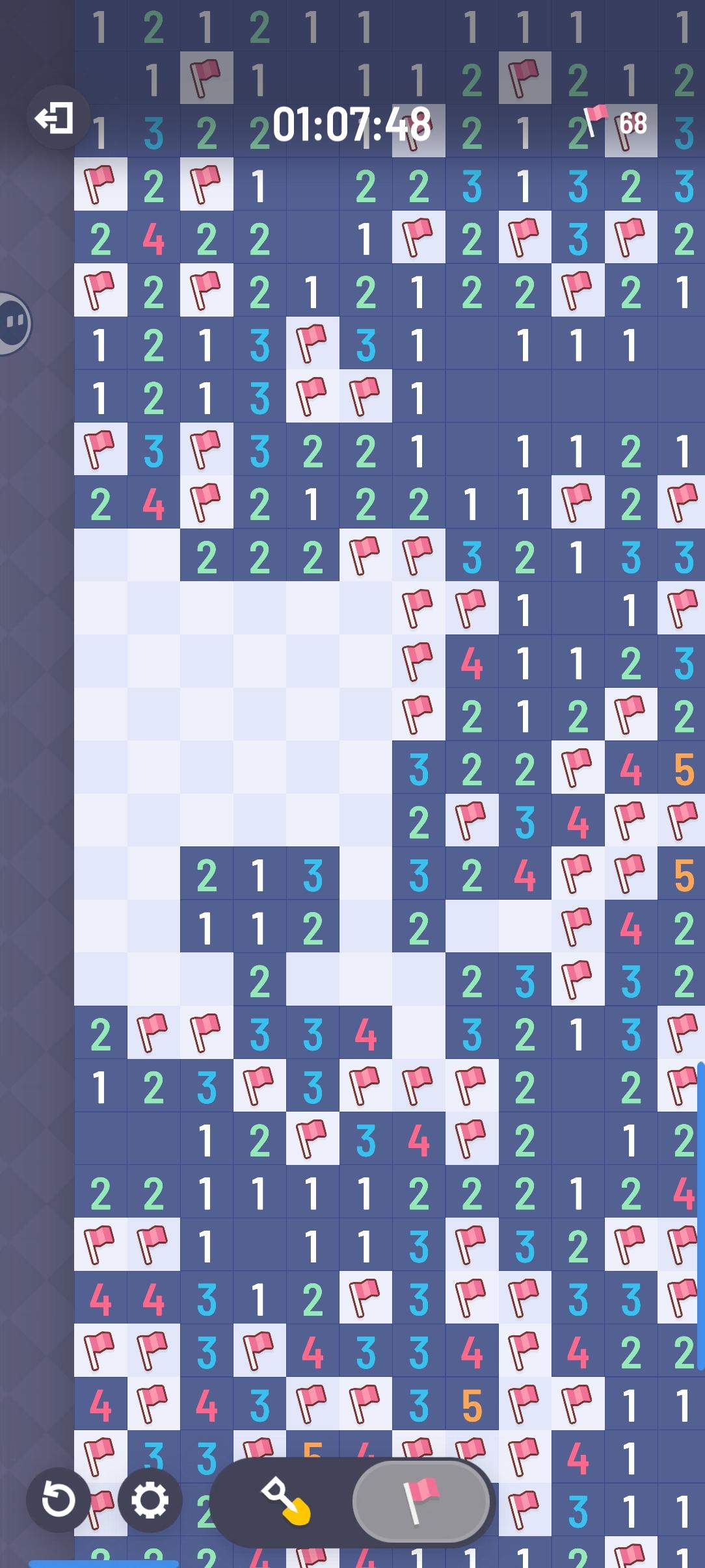 100*100,2500雷的图就剩最后一个雷了,这种被围起来的我是真没招…听大佬的加上整个地图的图片谢谢大佬们!!完美通关啦!