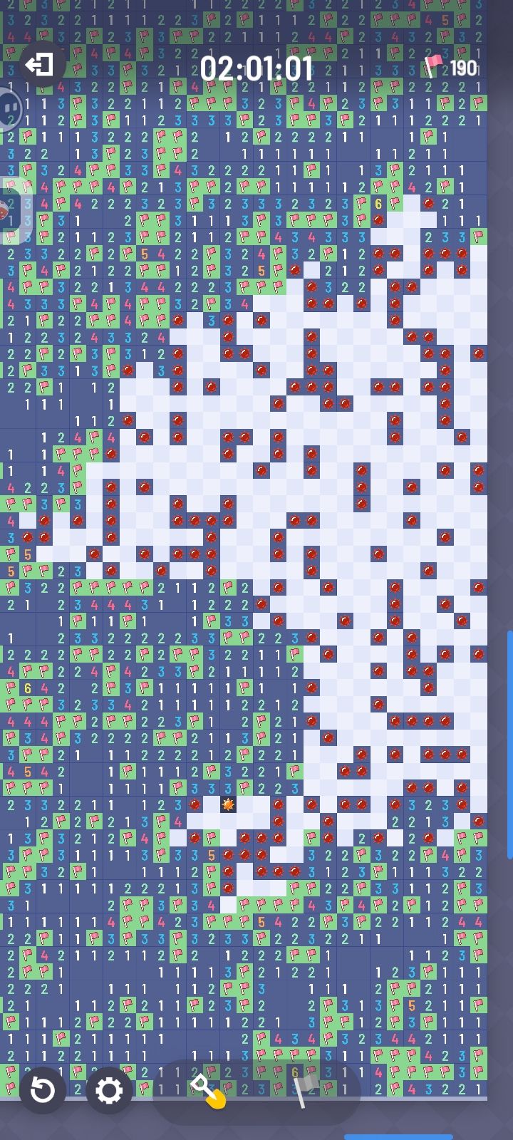 自定义了最高难度,每样数值都拉满。1000个雷。排到最后一百多个卡住了。怎么看都做不到再排一个如图,剩下未排区域,第一张图所有白色格子,第二张图左下角八面旗帜包围的最里面一个格子有请高手出马,帮忙看看到底还能不能排一个已知