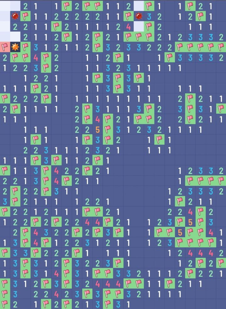 气死我了玩了两小时居然败在了最后一百颗雷(总共2500颗雷)啊啊啊啊啊!气死我了