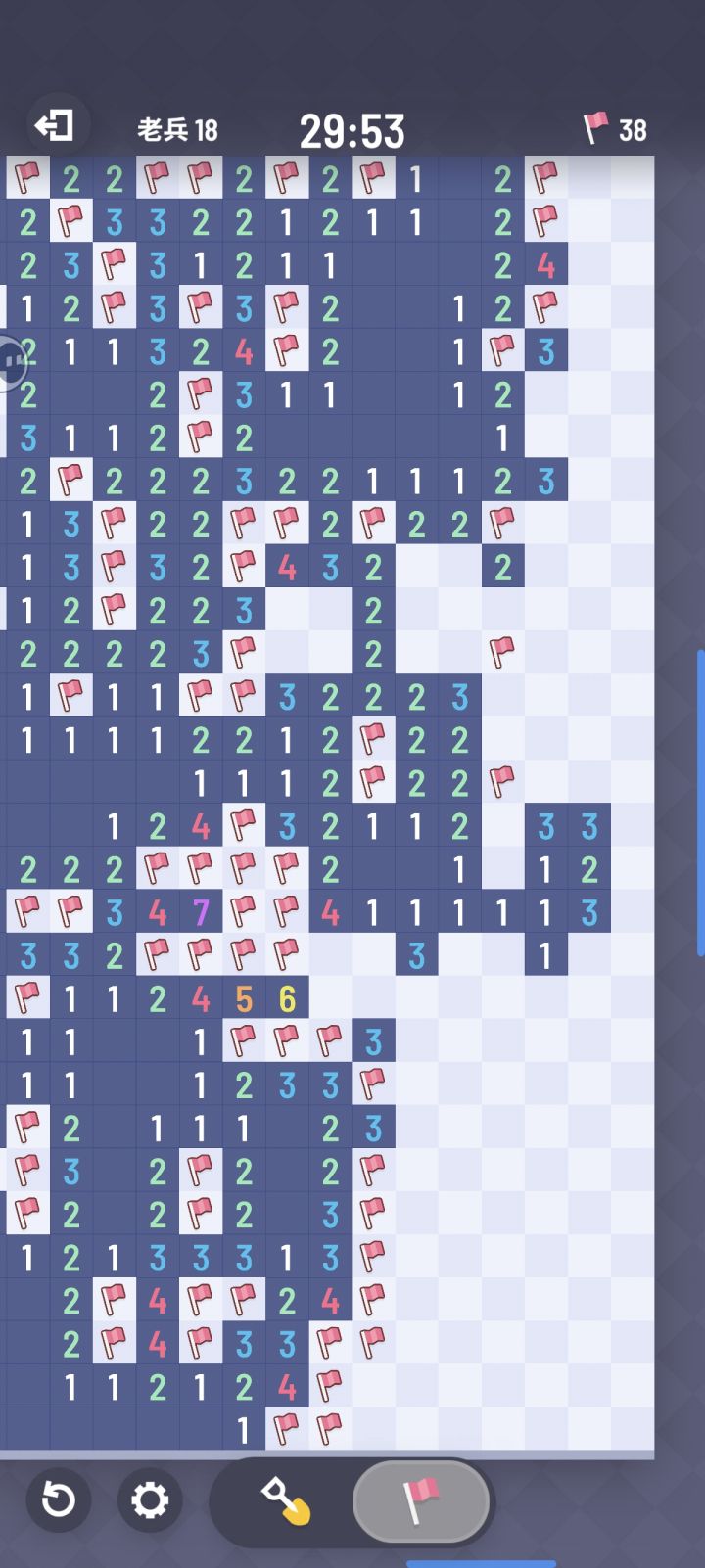 我先点的是圈起来的那个1,认为它是安全的,没给它问号,可是这个1又让旁边的问号起冲突,后面点空白的直接给我炸死了,可是没点之前,我自己也推了,觉得没有问题,玩的是无猜,不是有唯一性吗,问啥会有炸,不理解