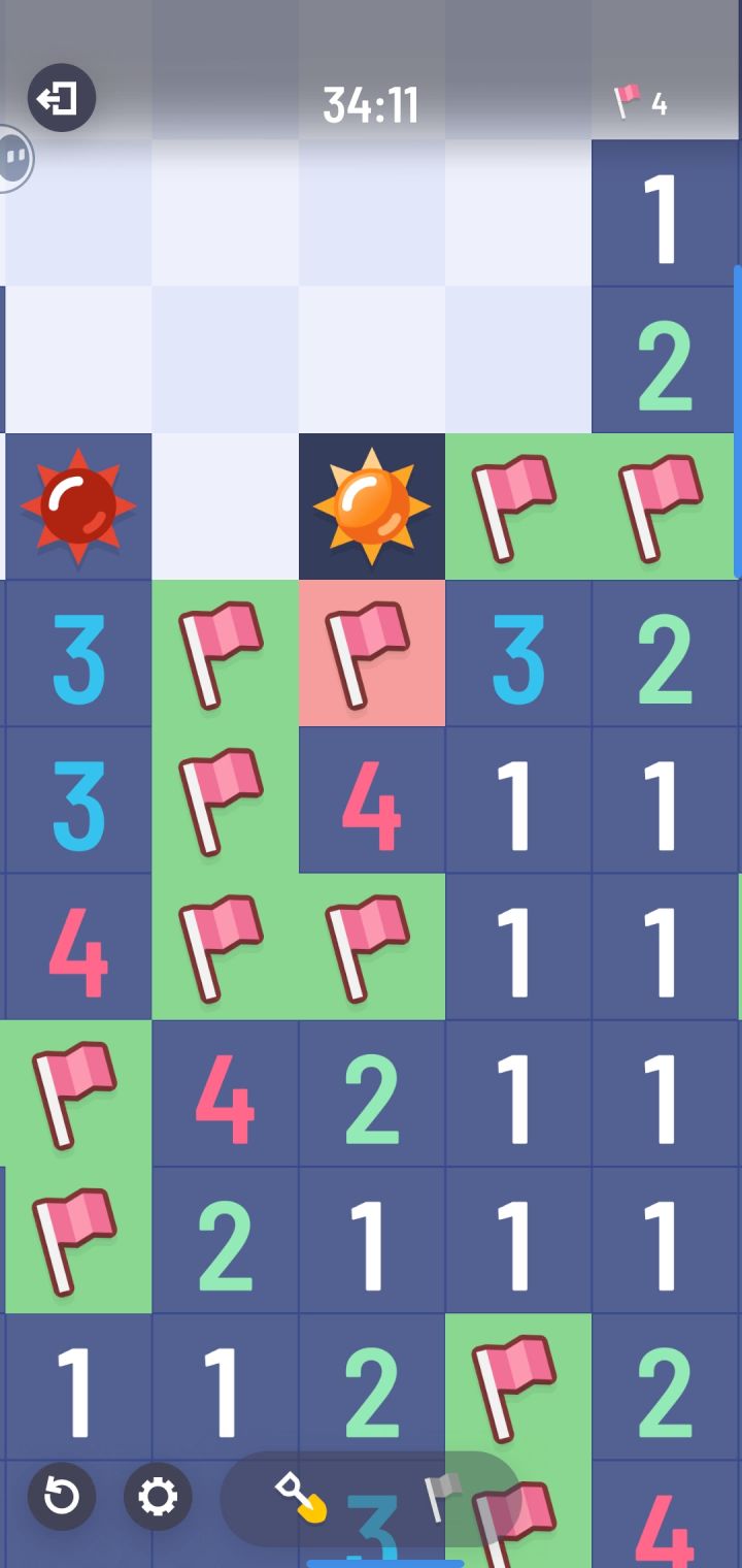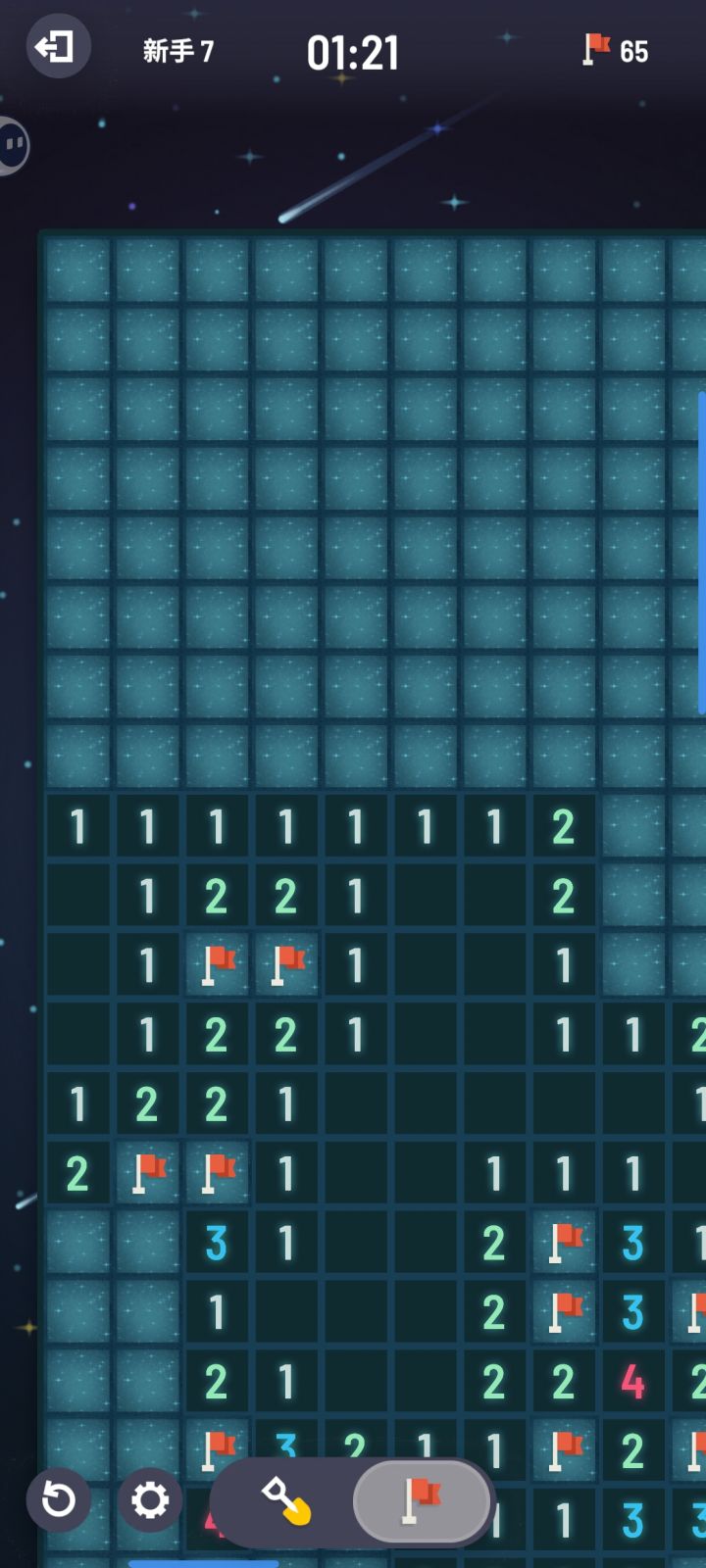 因为是大图不想在最后关头功亏一篑😭😭求助一下各位大佬,麻烦了😭推了几种情况是12/11个雷,其他的地方都确认格子翻开完了。我排查了四五次应该不会这么瞎一直漏看吧。提前感谢!