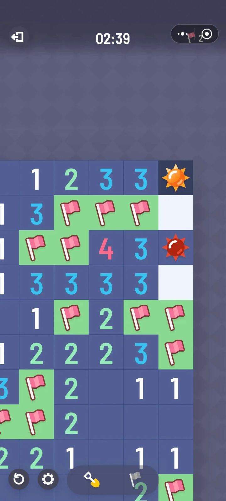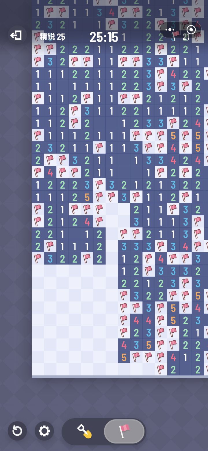 大佬帮一下,找不到了。地图开的差不多了,就剩这一块区域,其它地方,只有3个方块没开(未知),那三个是边角的不知道是雷还是空格没开,所以全图就剩下这一个区域了。