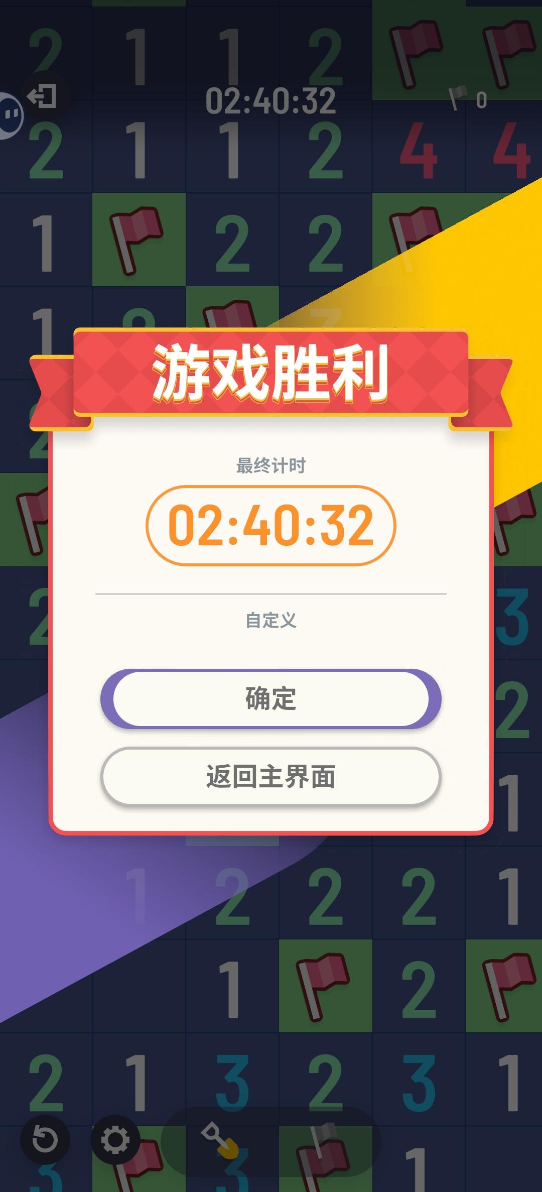 终于终于把自定义2500个雷扫完了,之前极限都会卡在240个雷左右,其实个人认为游戏里的教学关卡还是有点太单薄了,感觉其实还可以在多点教学,说实话,是真的有点痛苦的,还好最后给我搞出来了,(另外说一下不要去试图拍照片给豆包帮你扫雷,没有什么用,第一次感觉对ai有种无奈感),这种成就感还是挺好的,不过玩太久手指都有些酸,可能不会碰这种游戏了,我滴任务完成啦。