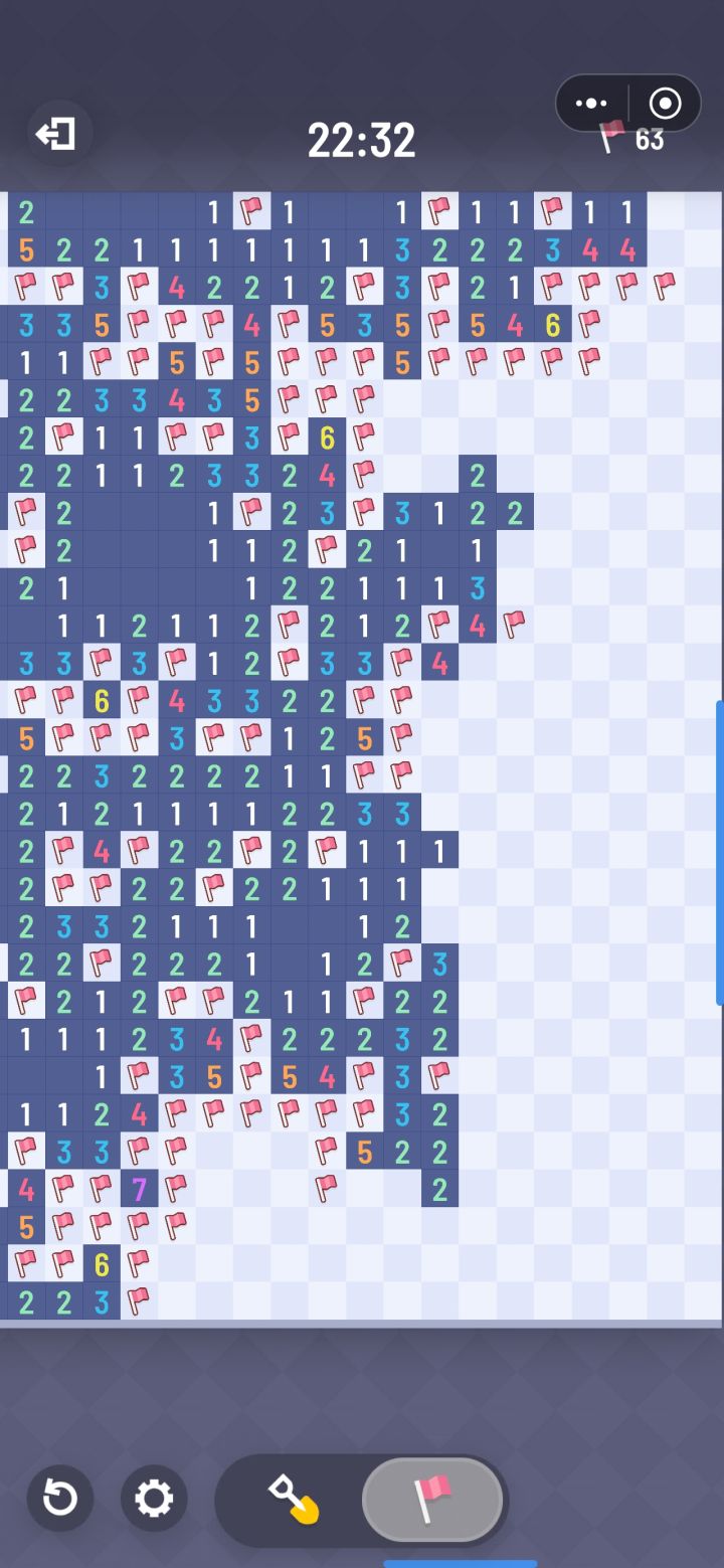 记录一下第一次100*100,2500雷。三次误触导致炸雷之后终于成功。难度并不是很高,但要求的准确度和扫了过半后的心理压力更大。感觉大部分需要判别的类型都会遇到,是一道很好的综合题。